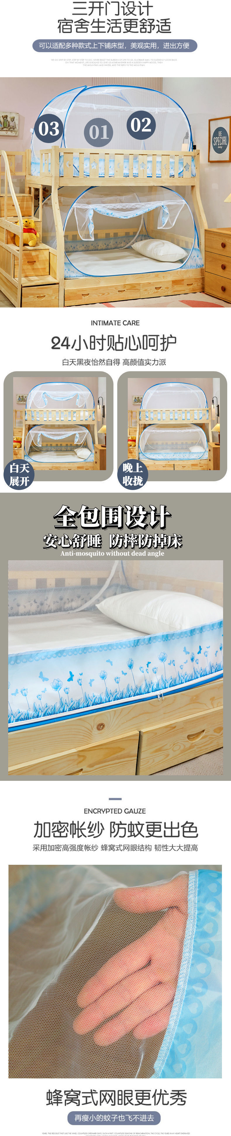 蚊帳 学生寮 二段ベッド 90 底付き 組み立て不要 パオ シングル ダブルベッド 家庭用 1.62m