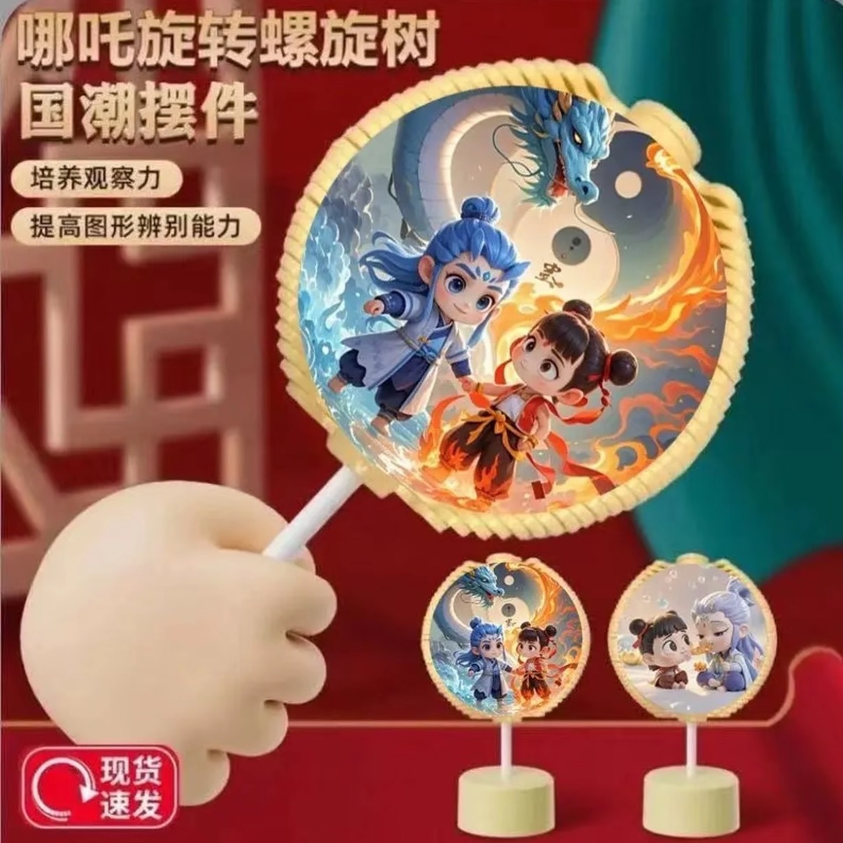 儿童川剧脸谱旋转棒棒糖斐波那契哪吒螺旋树旋转费氏数列玩具摆件