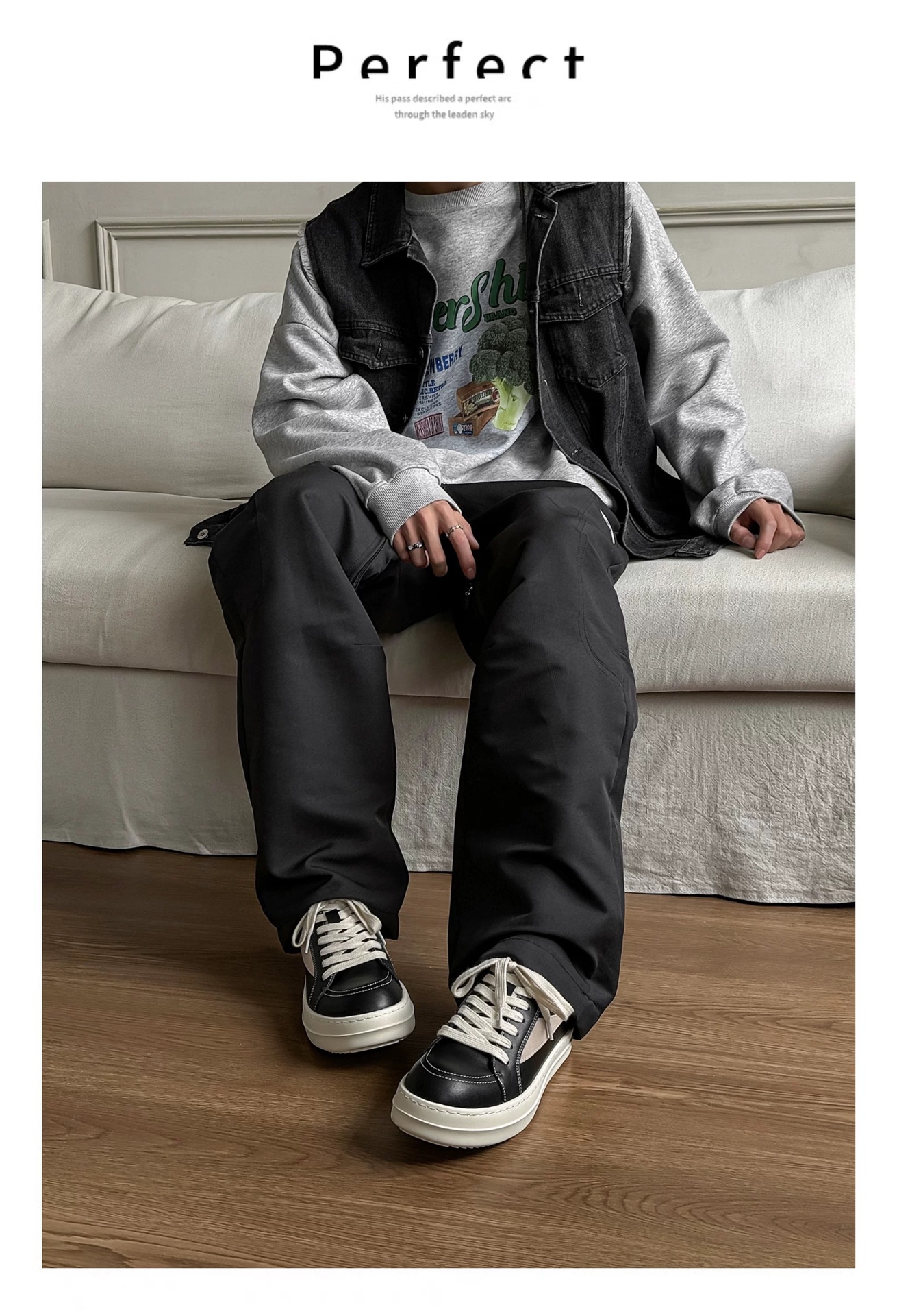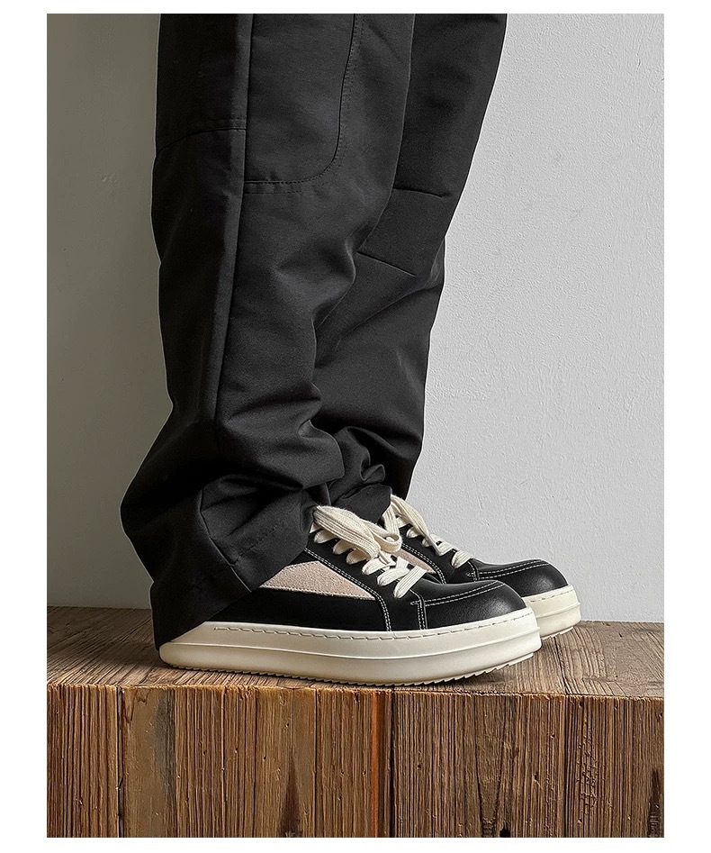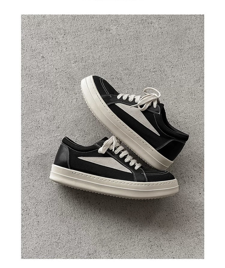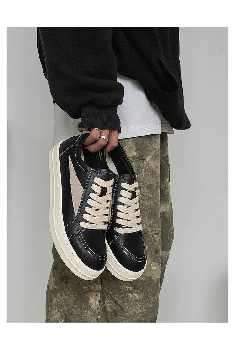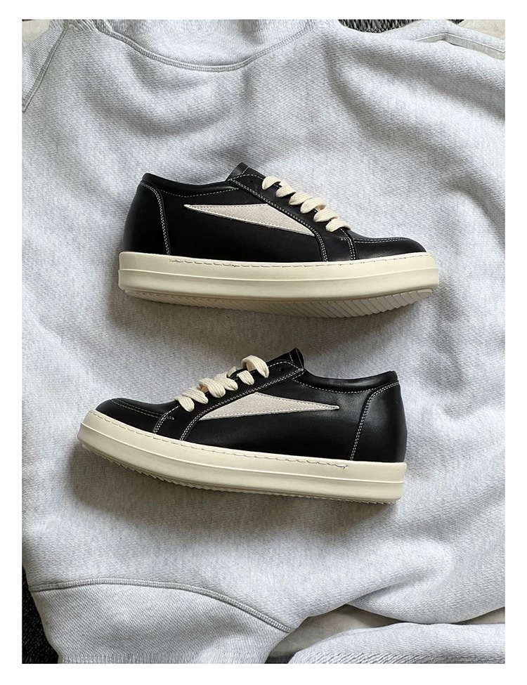 黒と白の厚底ローカットメンズスニーカーアメリカンハイストリートレトロニッチハイエンドローカジュアルスタイル