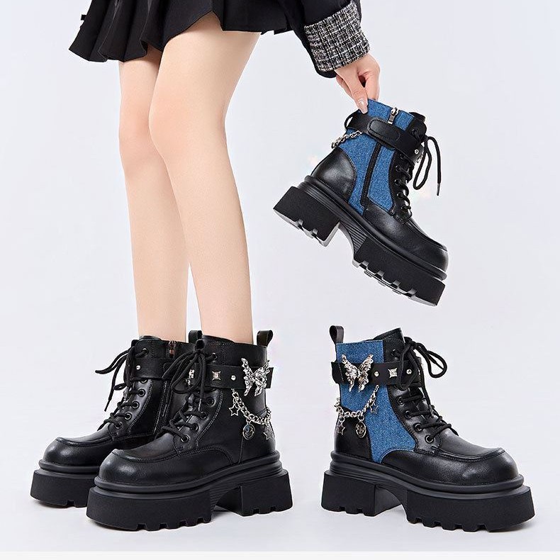 ビスケットの底の蝶のマーティンの靴の2024秋の新型の厚い底のファッションの靴の女性のカジュアルな軽い騎士の靴の女性のショートブーツ