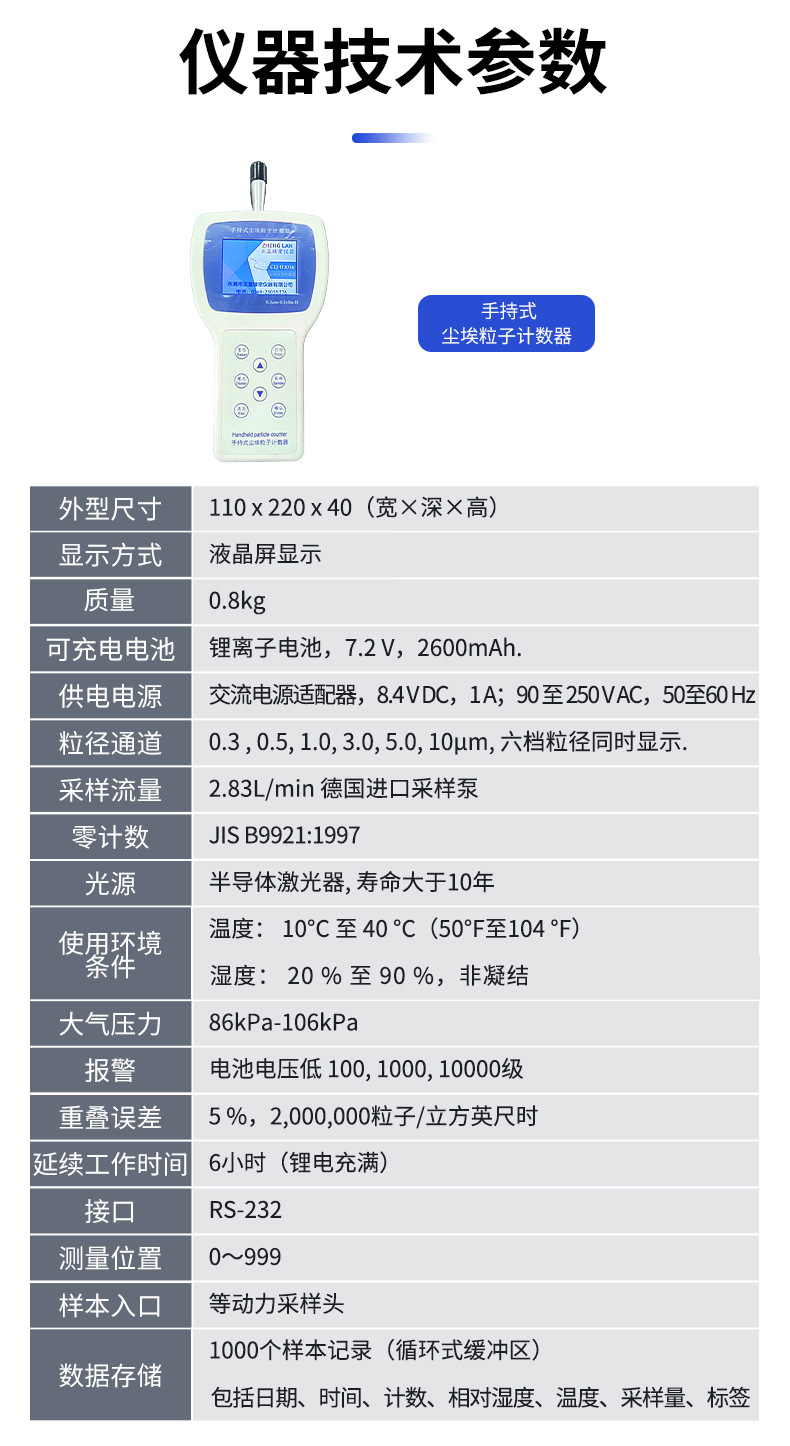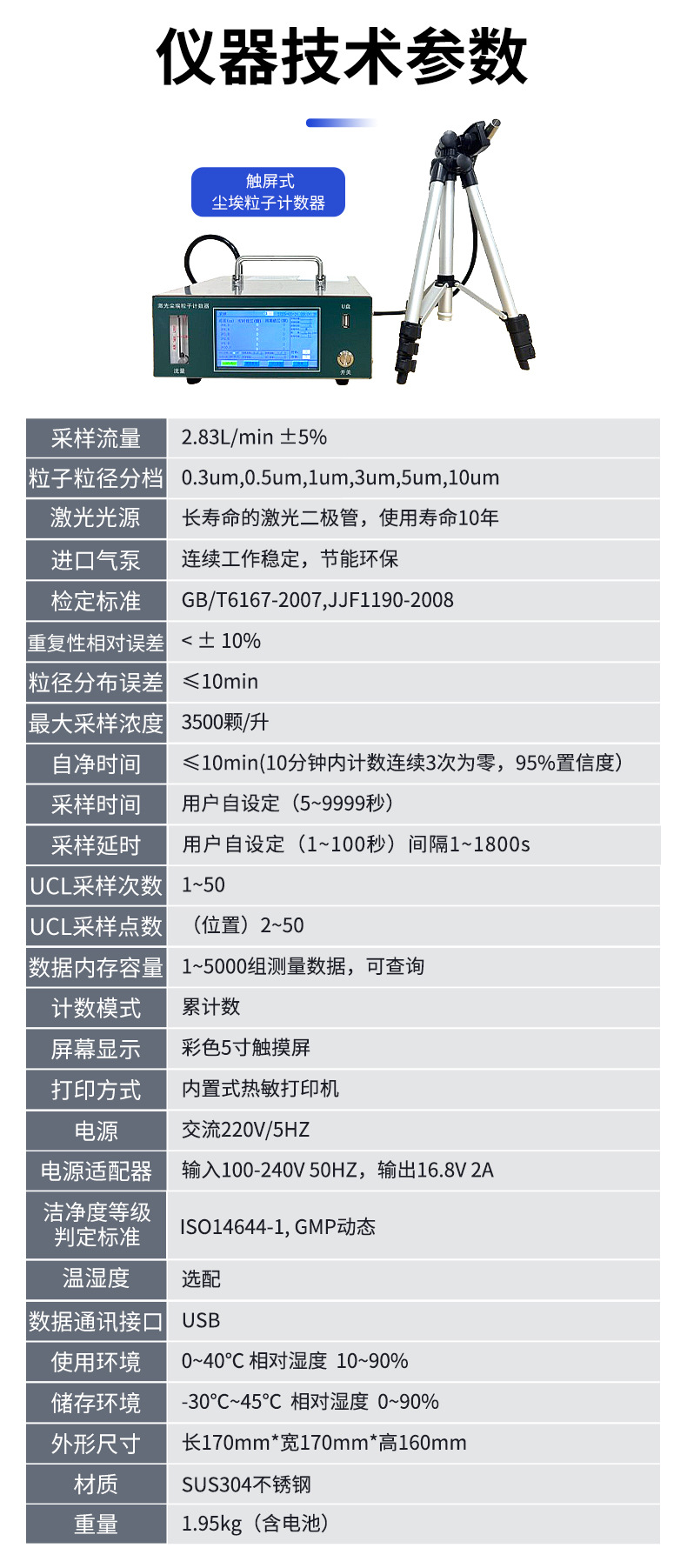 仕様 CLJ-E3016 粉塵粒子カウンター(タッチスクリーン),CLJ-H3016 ハンドヘルド粉塵粒子カウンター,CLJ-E ボタン式卓上粉塵計数器