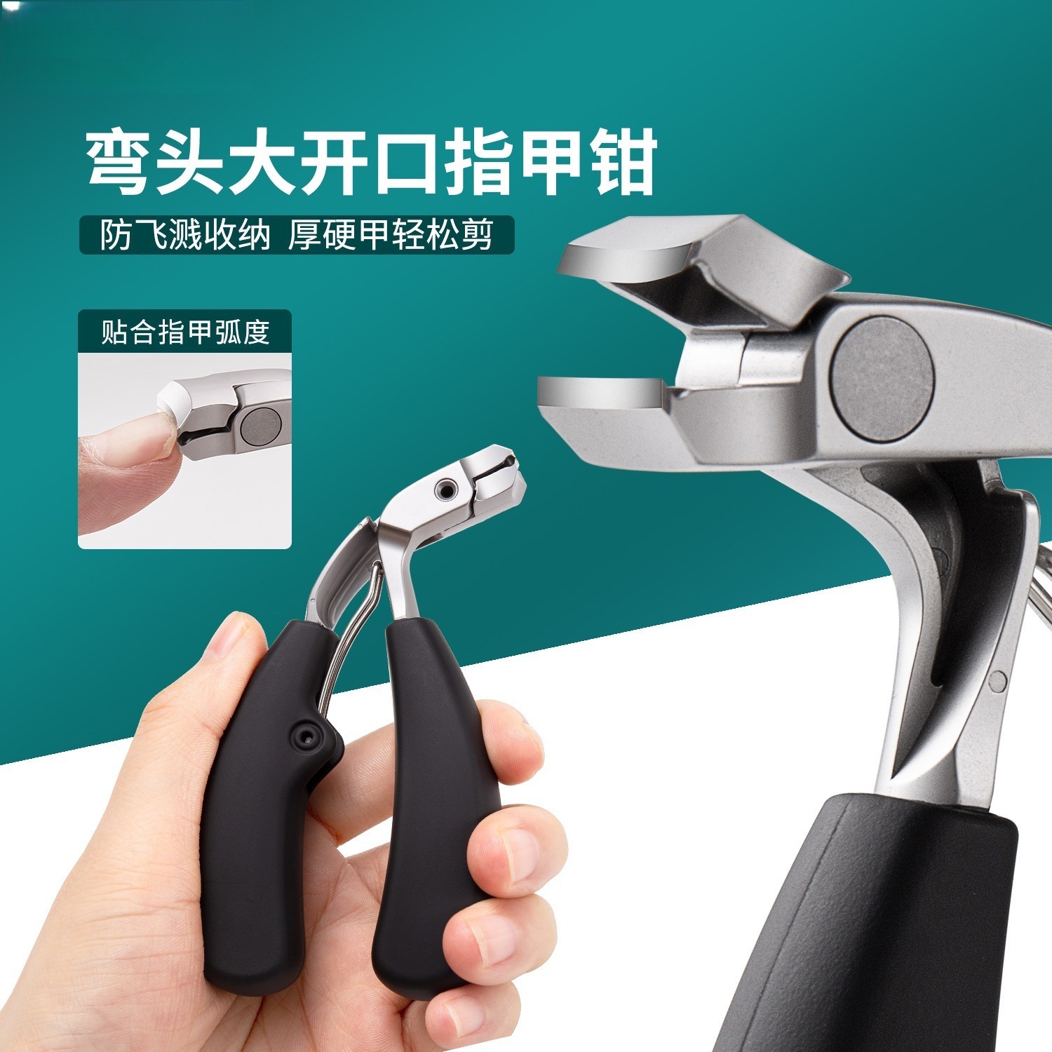 弯头大开口指甲钳防飞溅不锈钢指甲剪刀修脚专用套装指甲刀鹰嘴钳