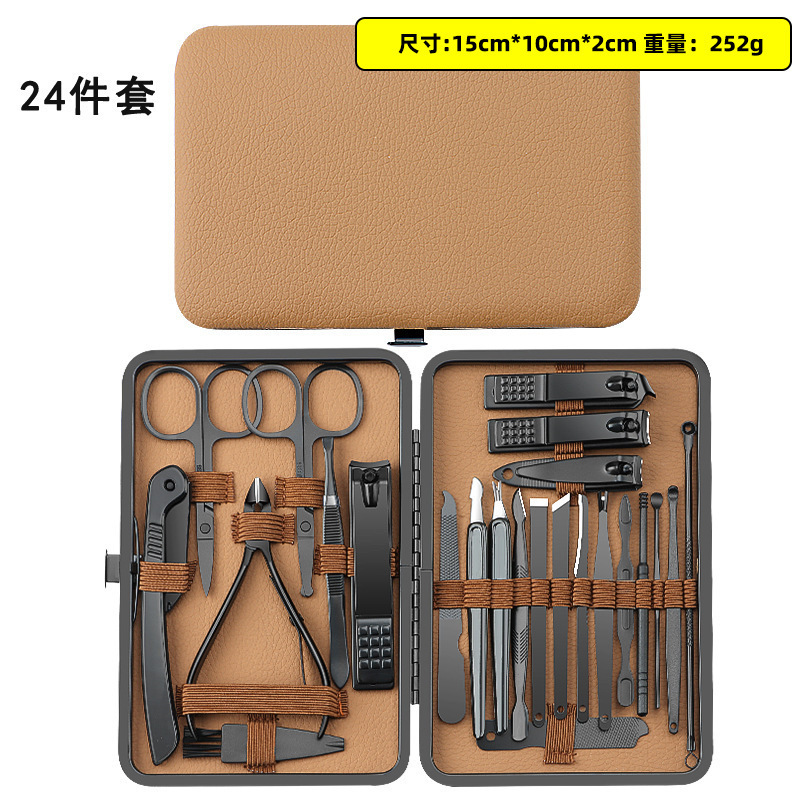 2025新型国境を越えた茶色の包み爪刀セット7-26点セットのマニキュア道具鷹口鉗子