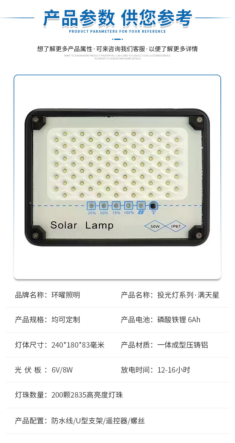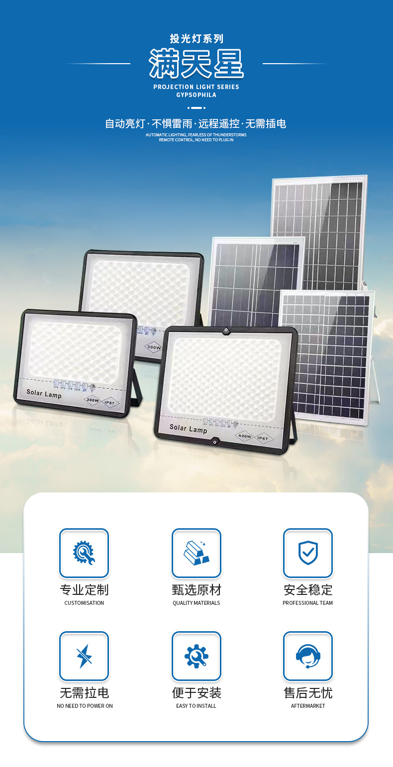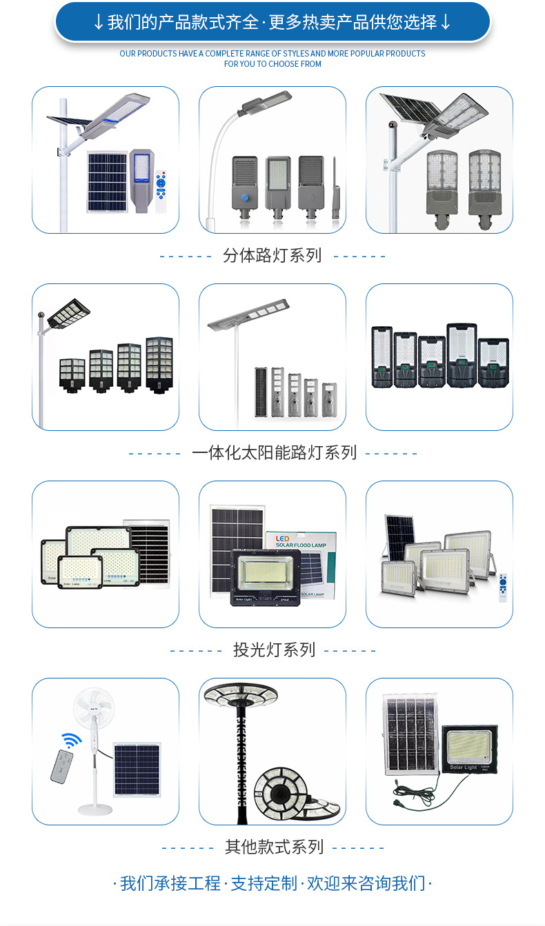メーカーは高出力投光器、農村建設用太陽光街路灯、市街地工事道路防水照明を供給しています。