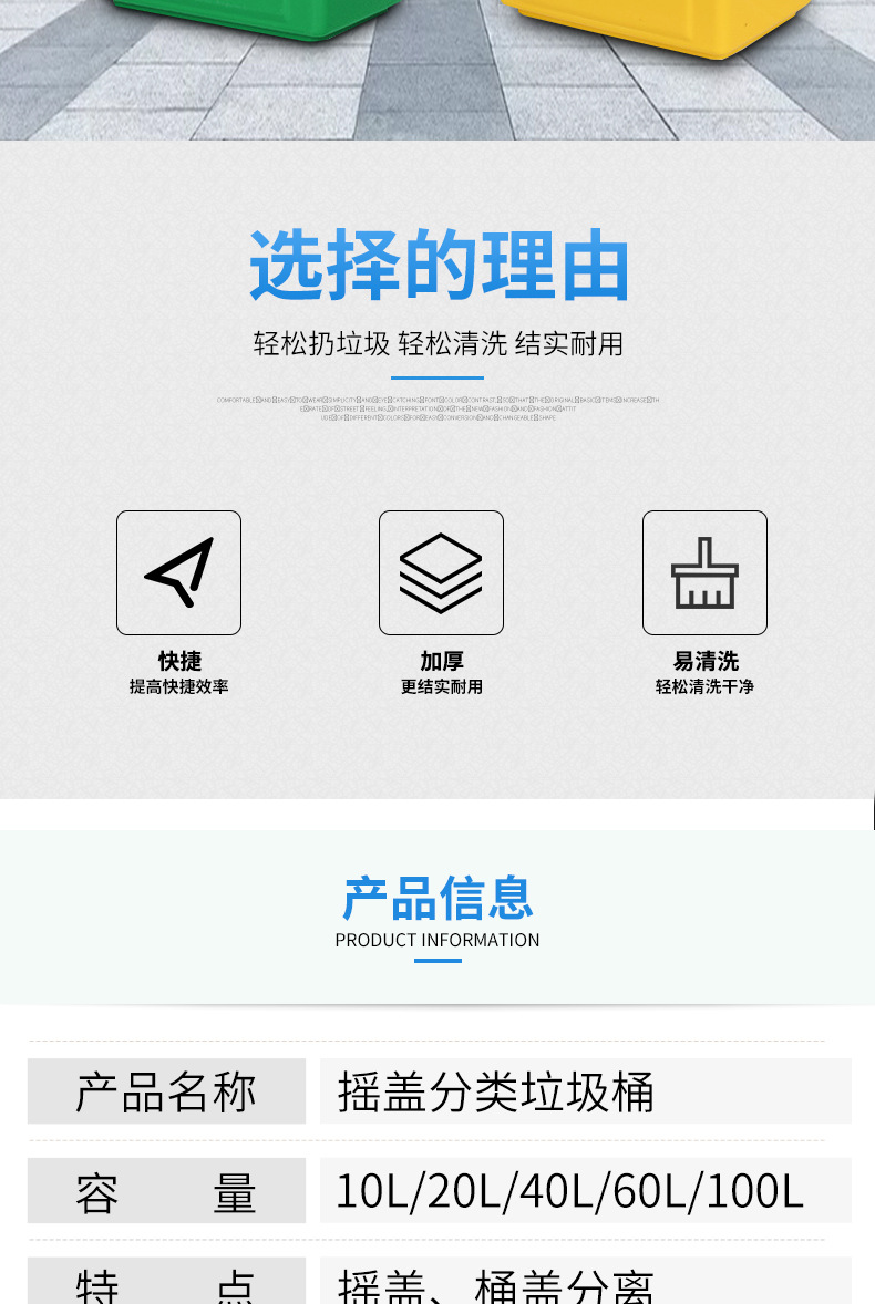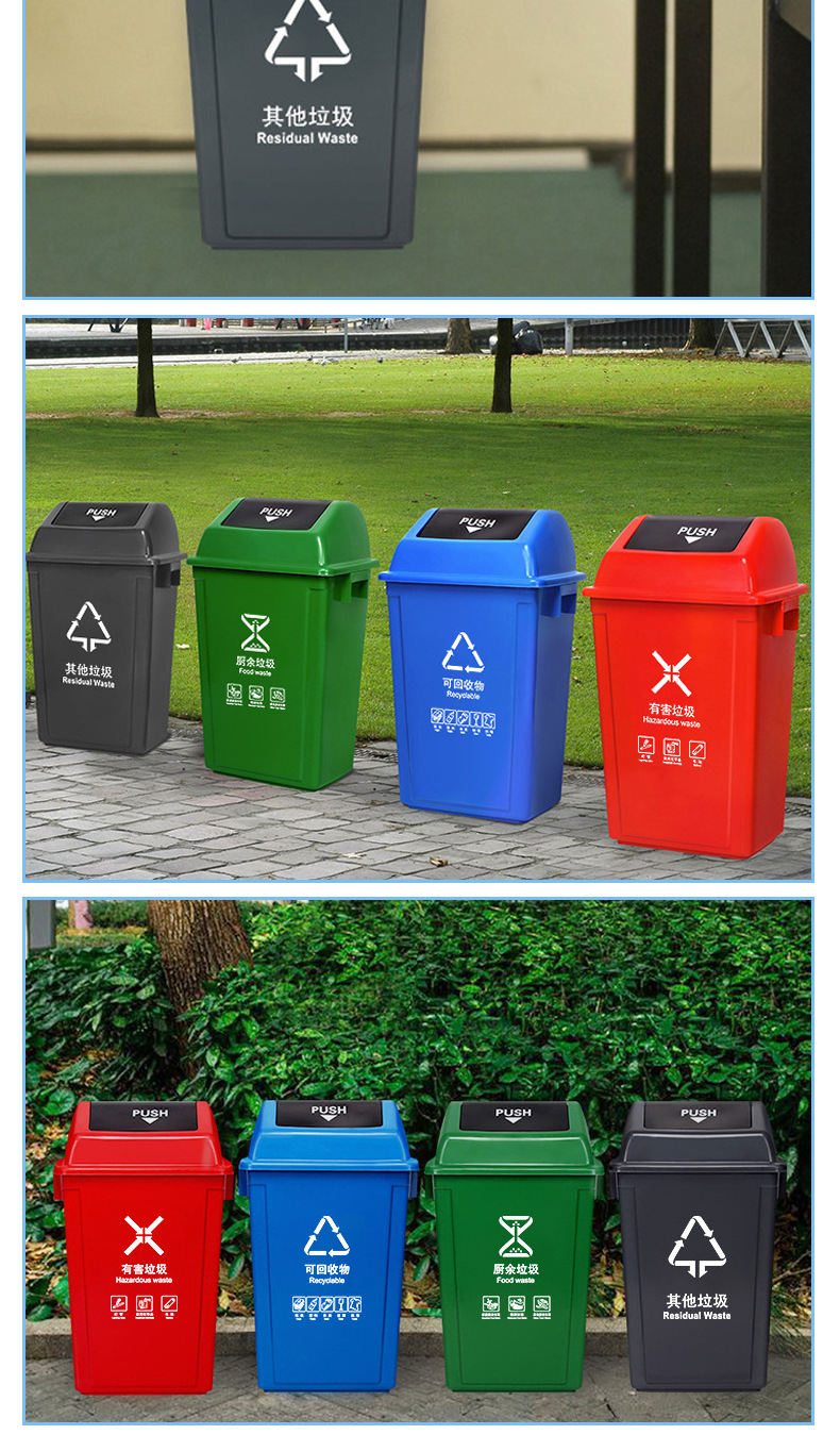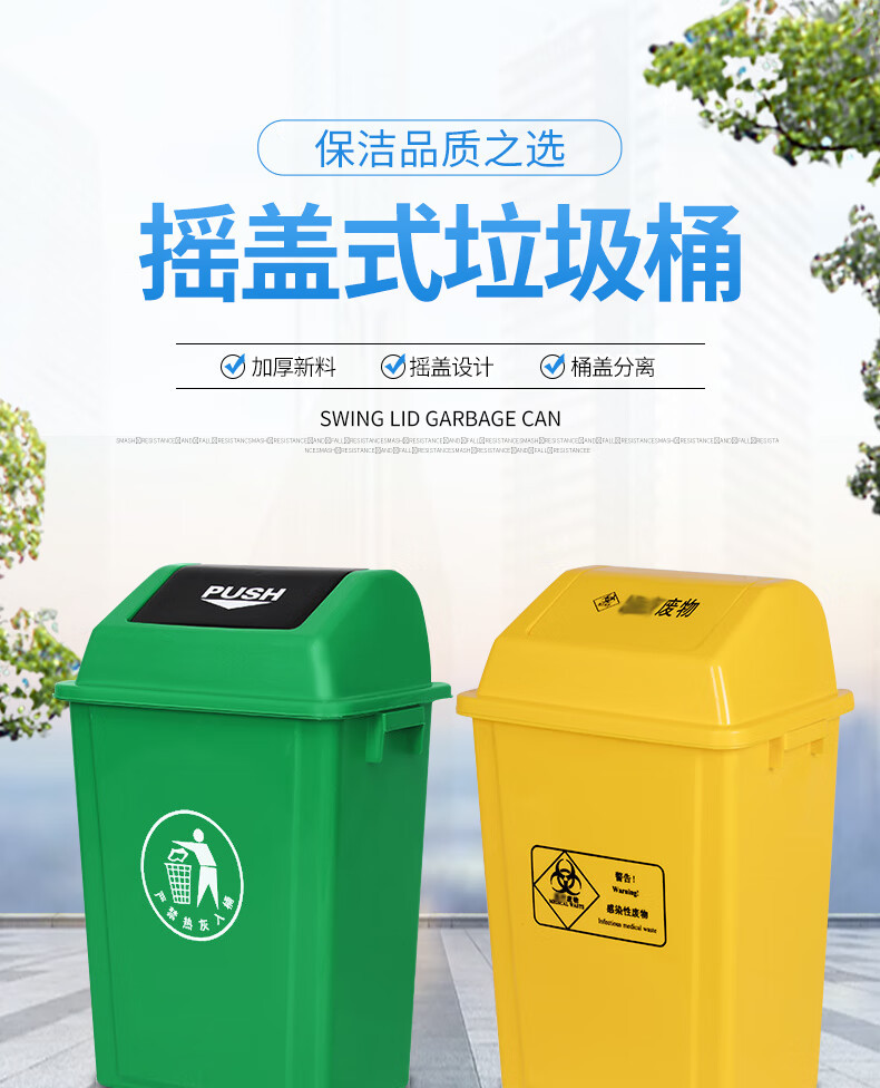 VLEN ロッキング蓋分類ゴミ箱屋外衛生肥厚取り外し可能な大容量ゴミ箱