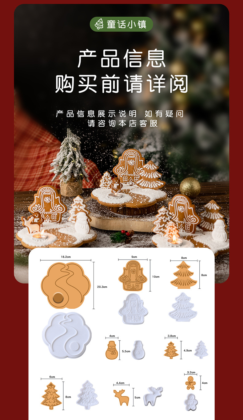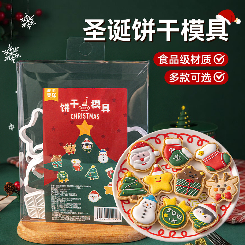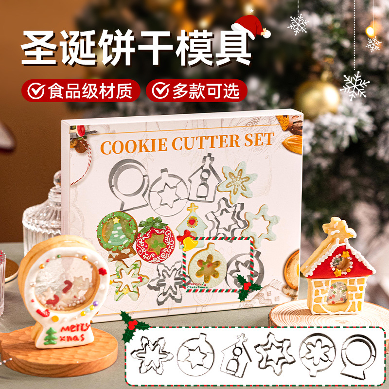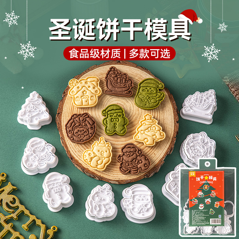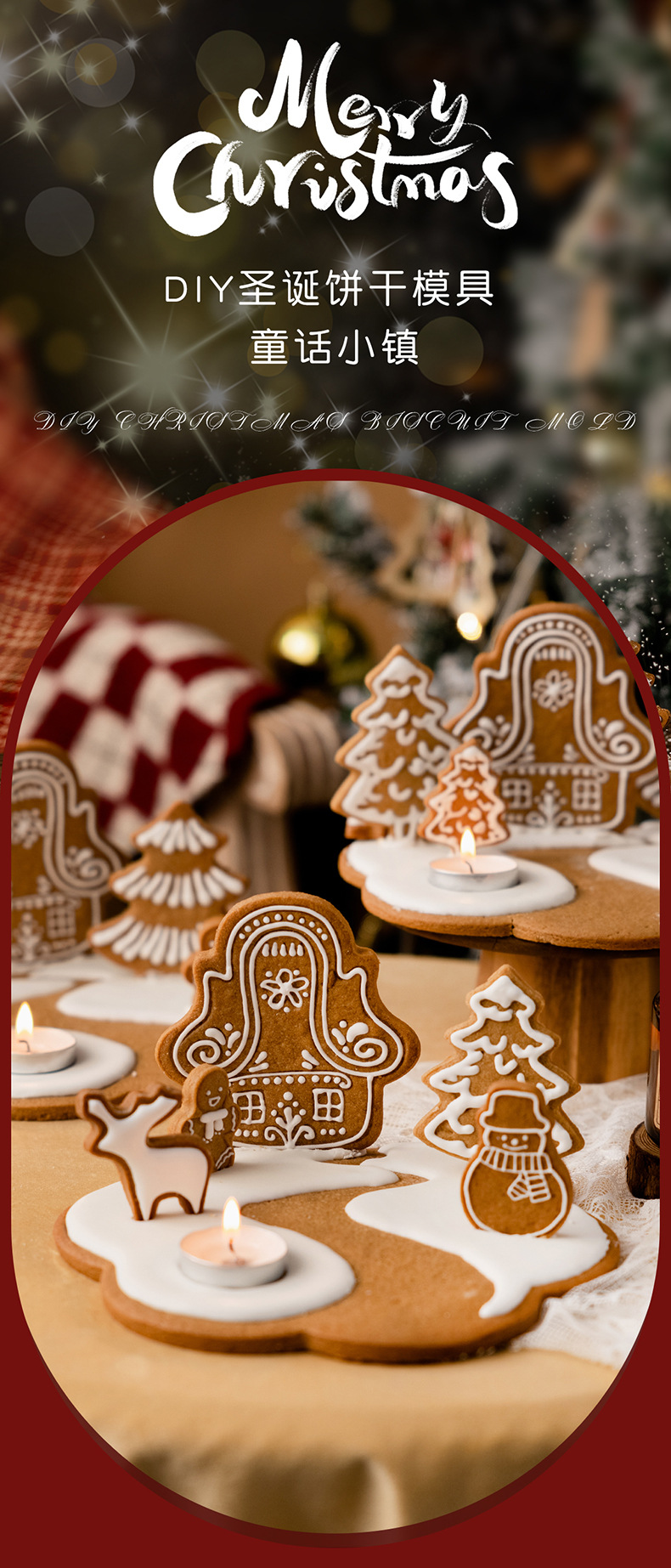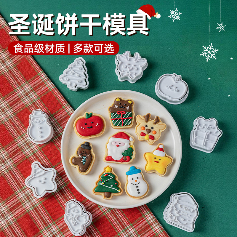 圣诞饼干模具节圣诞树糖霜姜饼人雪屋按压式diy曲奇磨烘焙工卡通