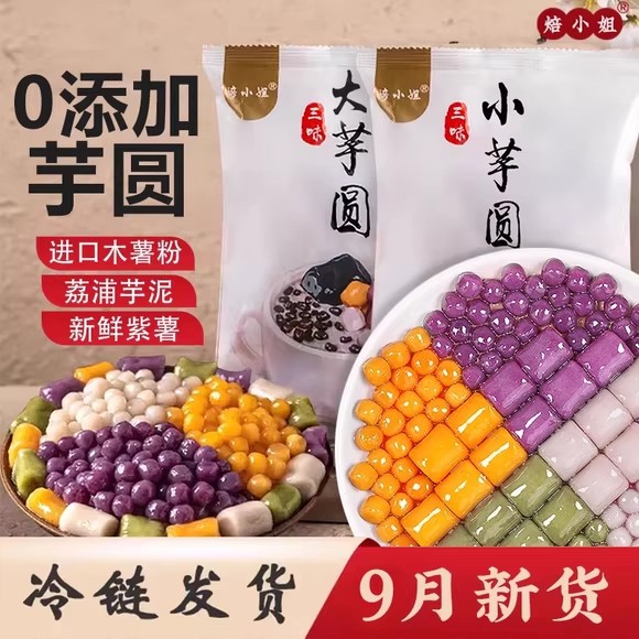 三色の大きいサトイモの丸い手作りのサトイモの丸い混合はミルクティーの店の専用の原料の小さいサトイモの丸い家庭の半製品の新鮮なサトイモの仙を詰めます。