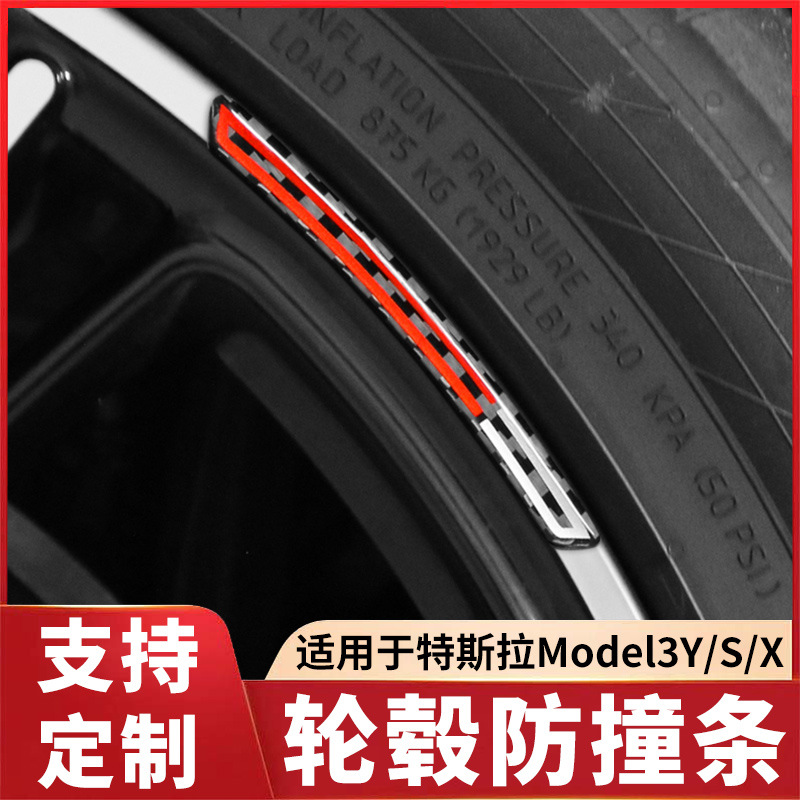 テスラモデル 3 モデル Y XS ホイールハブアンチスクラッチストリップカーボンファイバーバックミラーホイール眉毛衝突防止ステッカーに適しています