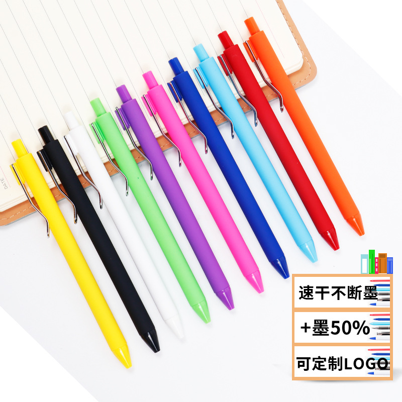 カスタムペンとロゴ押し白ペンモランディ色黒芯st頭速乾ブラシ問題中性ペン押し黒芯