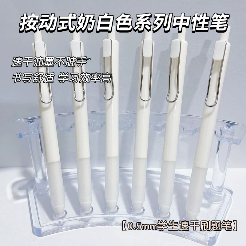 按动式奶白色系列ins高颜值简约风学生考试顺滑0.5速干黑色刷题笔