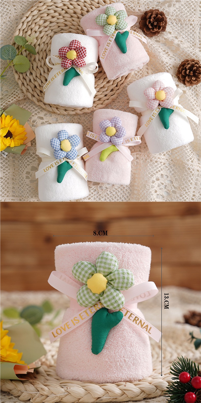 ひまわりチューリップシリーズコーラルベルベットギフトタオルウェディングストアお祝いお土産スクエアタオルタオルハンカチ