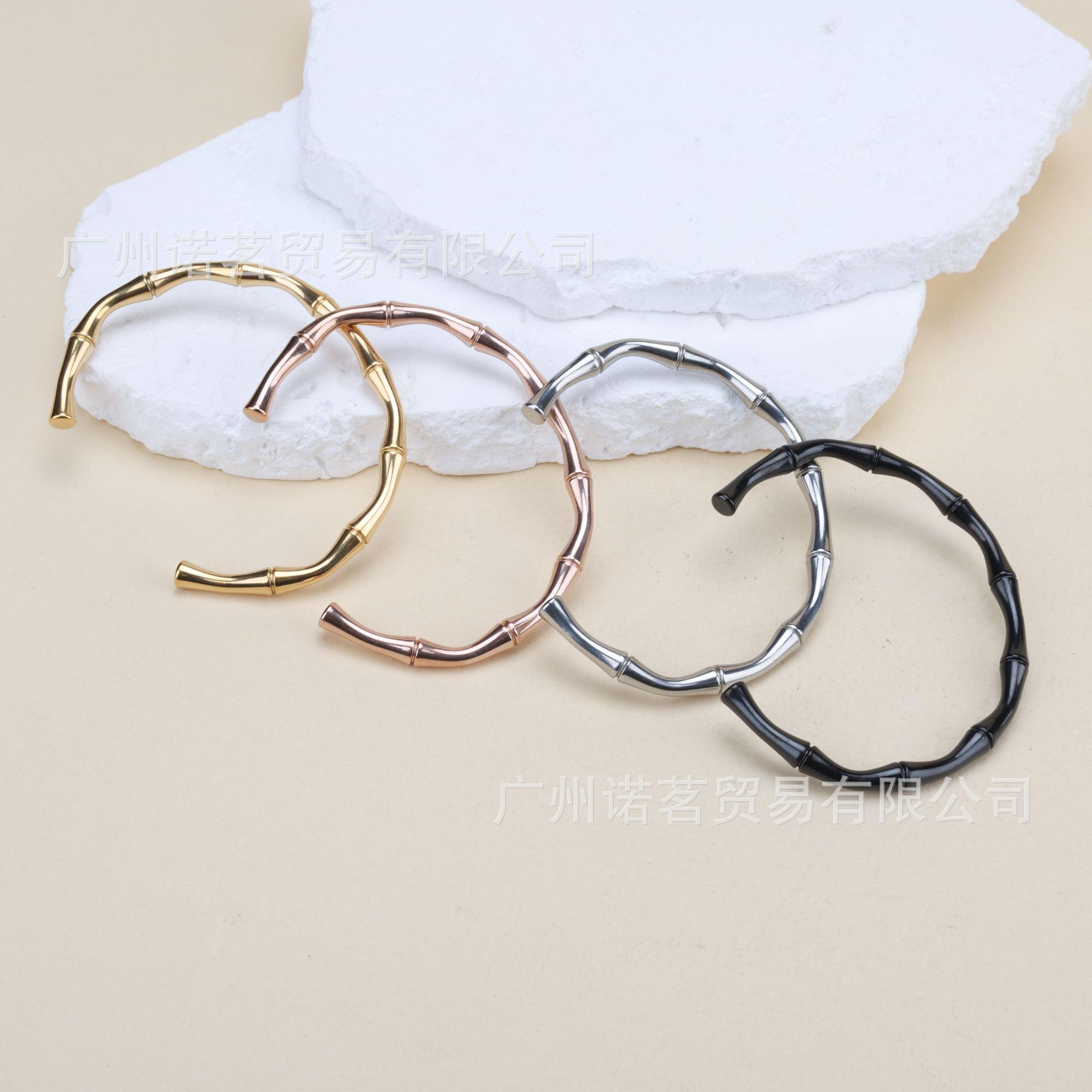 跨境批发钛钢手镯女时尚竹节手镯手饰金色开口竹节不锈钢手链手环