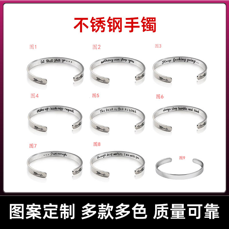 ステンレスブレスレットc形オープンレタリングブレスレット