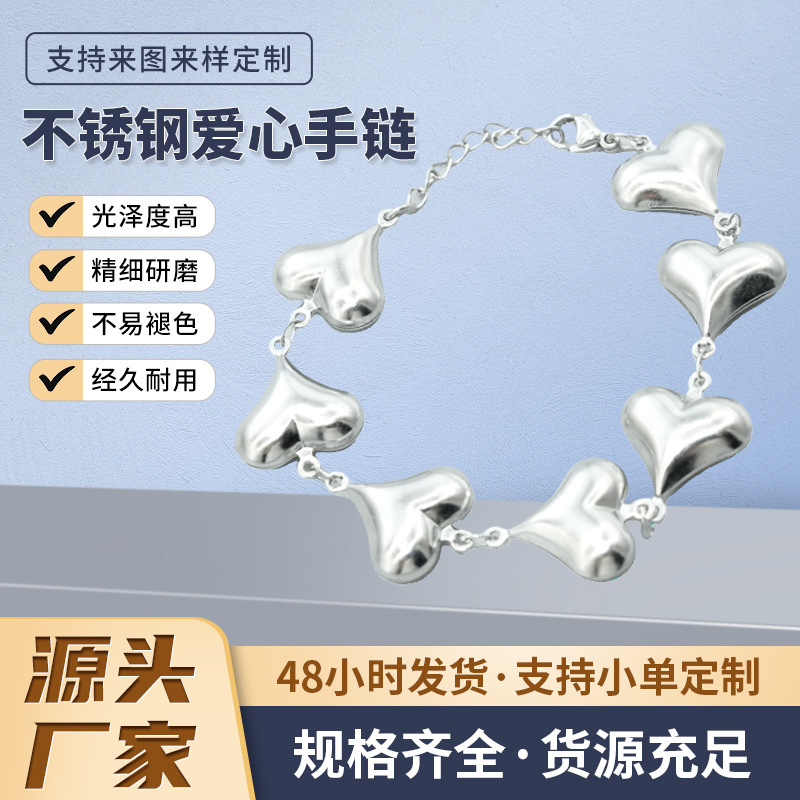フレンチスタイルの個性的な鎖骨チェーン、軽やかな高級感のステンレス製ハートネックレスとブレスレット、チタン製ジュエリー、甘くてクールなスタイル