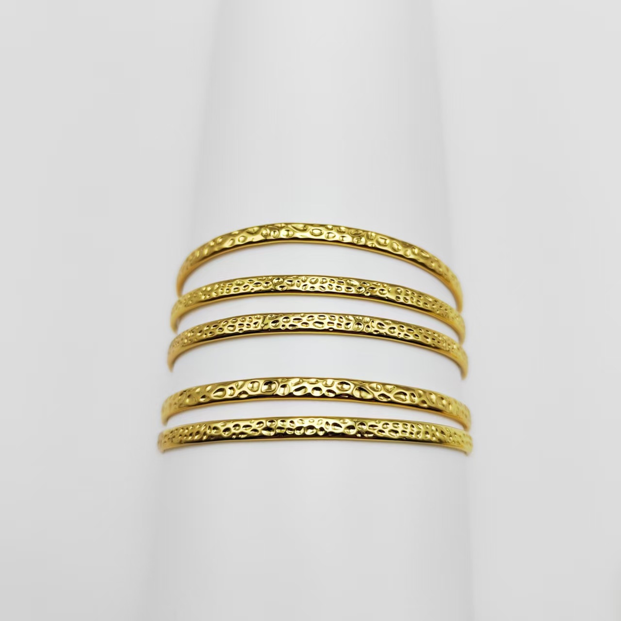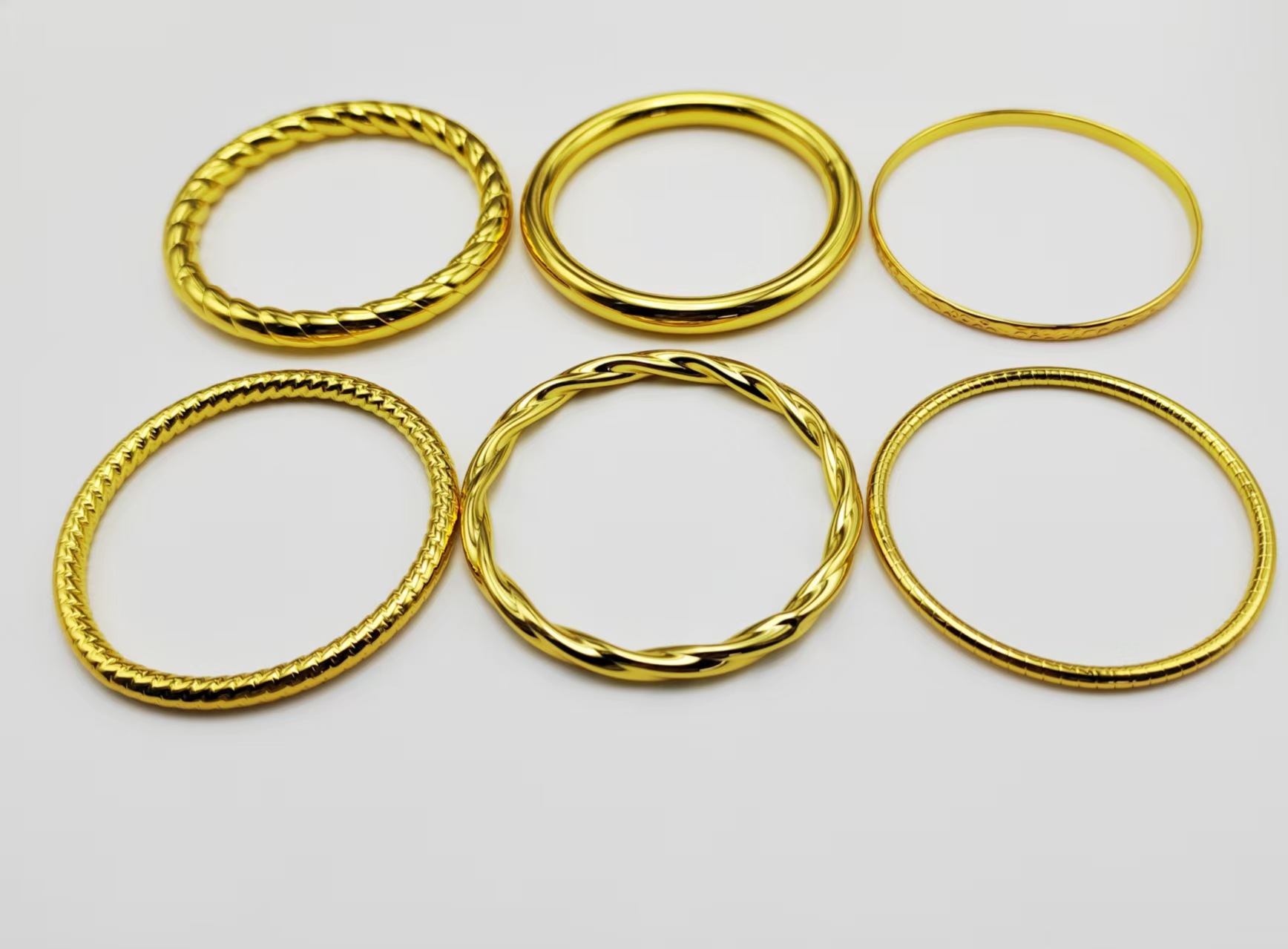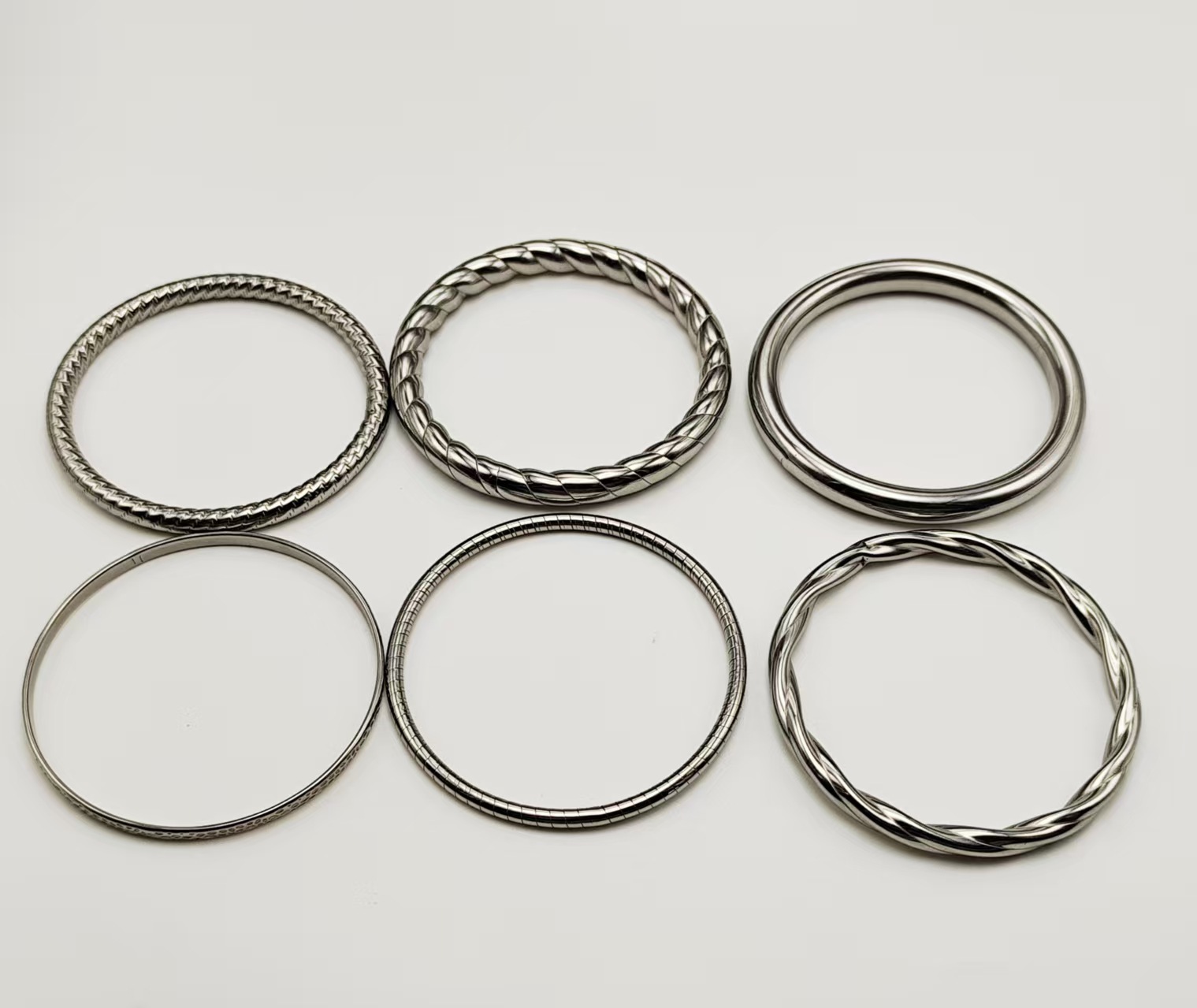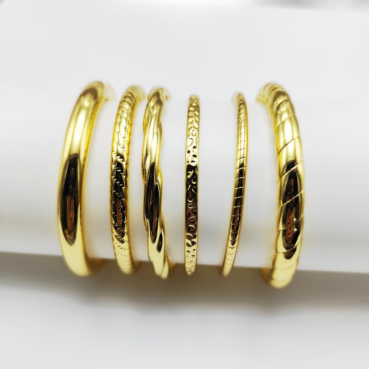 欧美跨境高级感不锈钢空心压花光面手镯不掉色手镯几何时尚