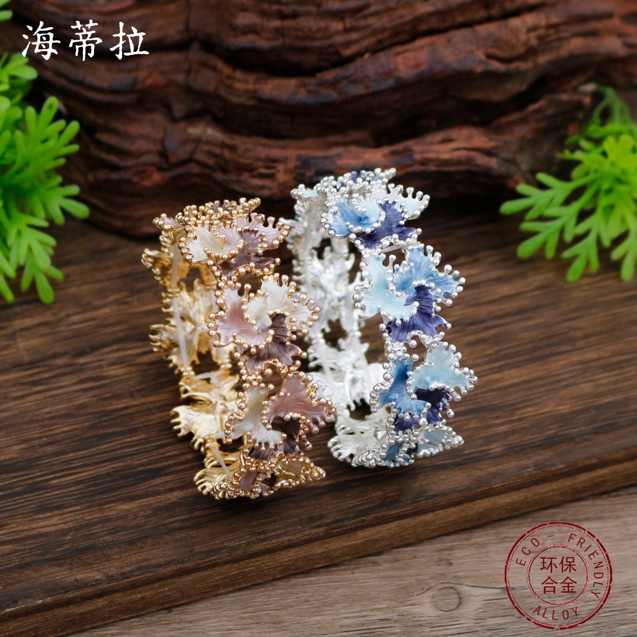 跨境新款珐琅彩不规则立体花朵弹力手镯女士时尚设计感花朵手镯