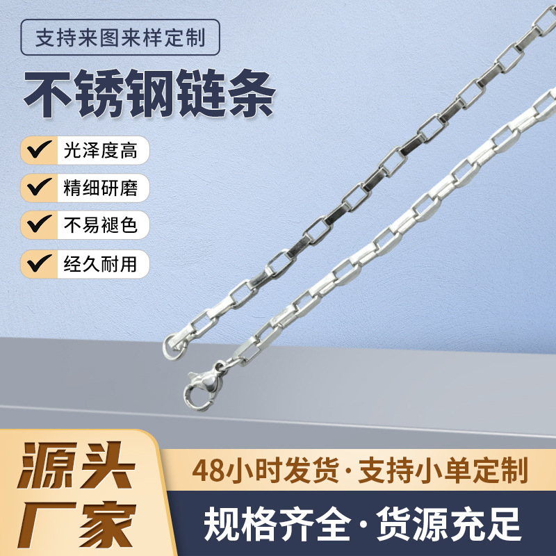 ヨーロッパとアメリカのファッションシンプルな人気のプレーンチェーンスチールカラーのハイエンドステンレススチールボックスチェーン男性と女性のネックレスメタルチェーン