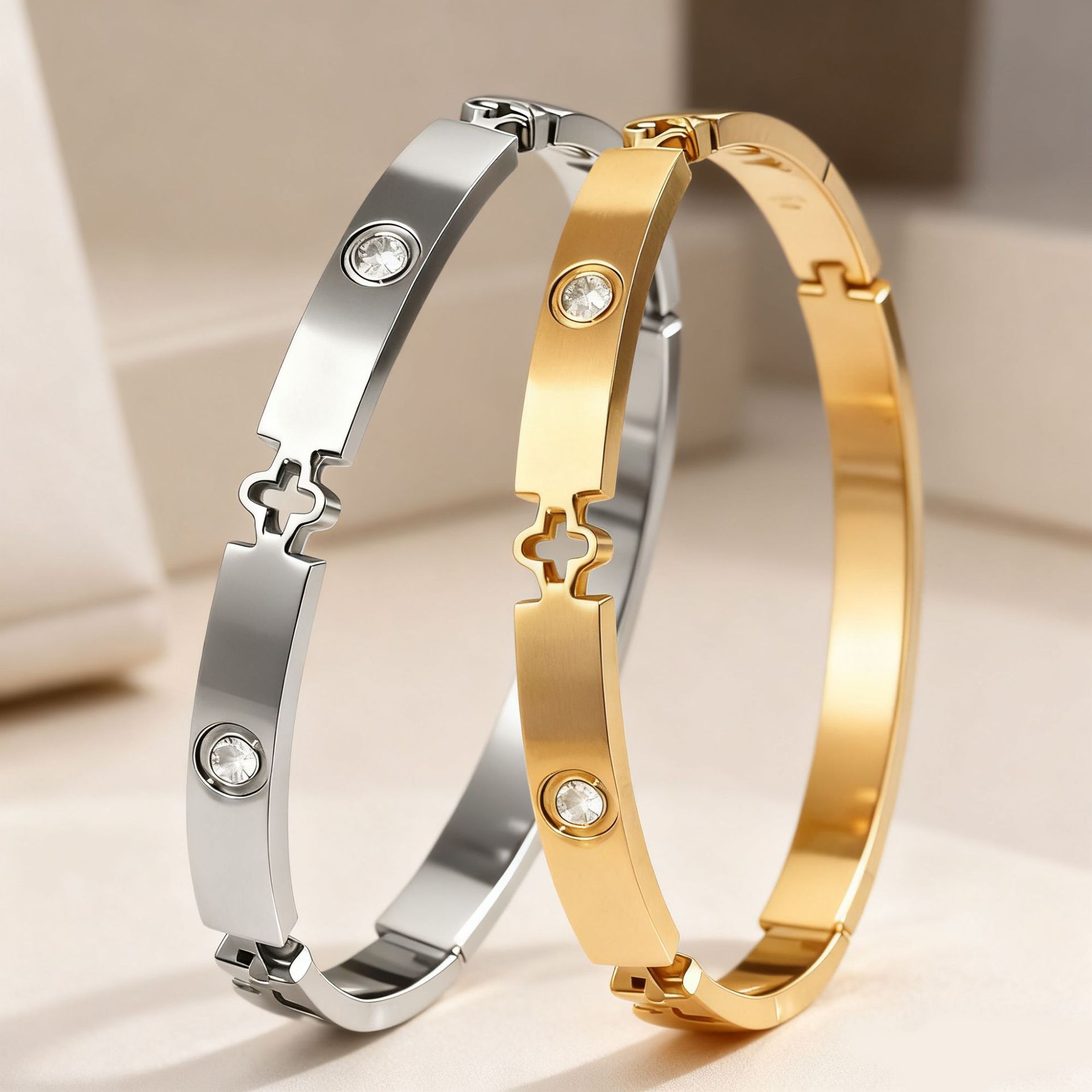 欧美希音跨境手镯女四叶草不掉色手环高级感时尚创意不锈钢手镯