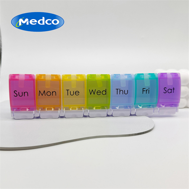 跨境专供一周药盒药品分类收纳盒早中晚按压式药盒便携式医药箱