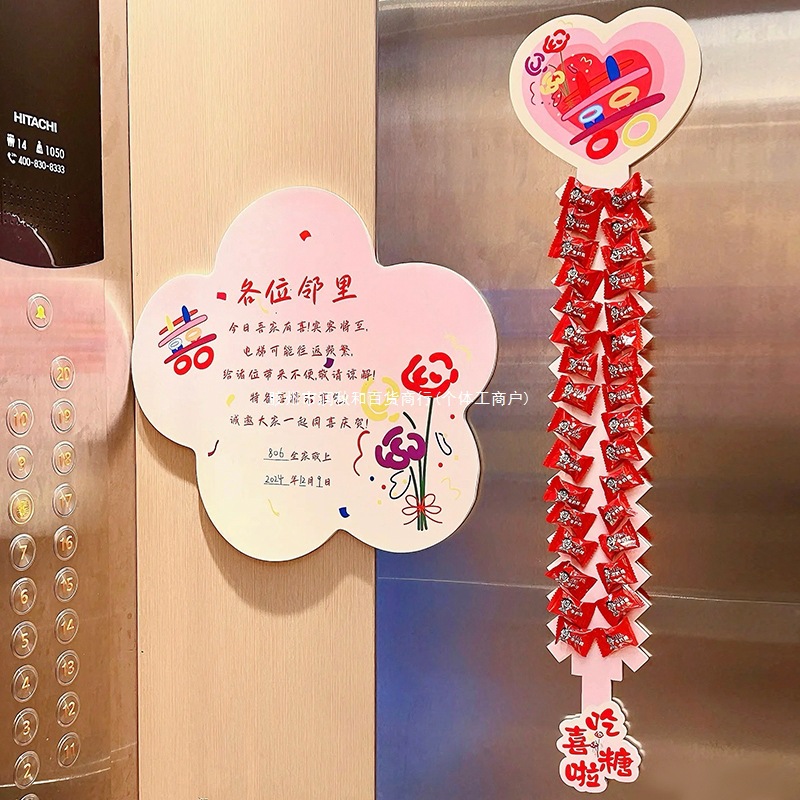 装飾の配置の喜糖のロリポップの結婚の喜字はエレベーターの郵便の結婚式のKTの掲示板の喜字を貼って郵送します。