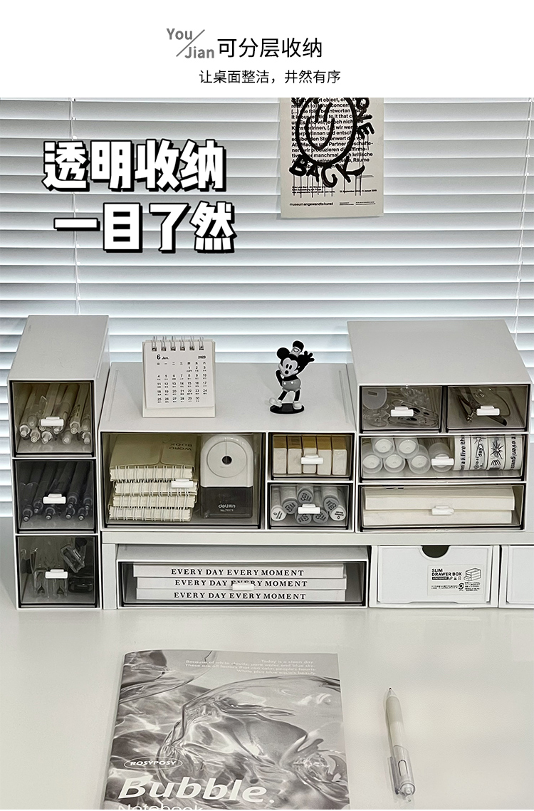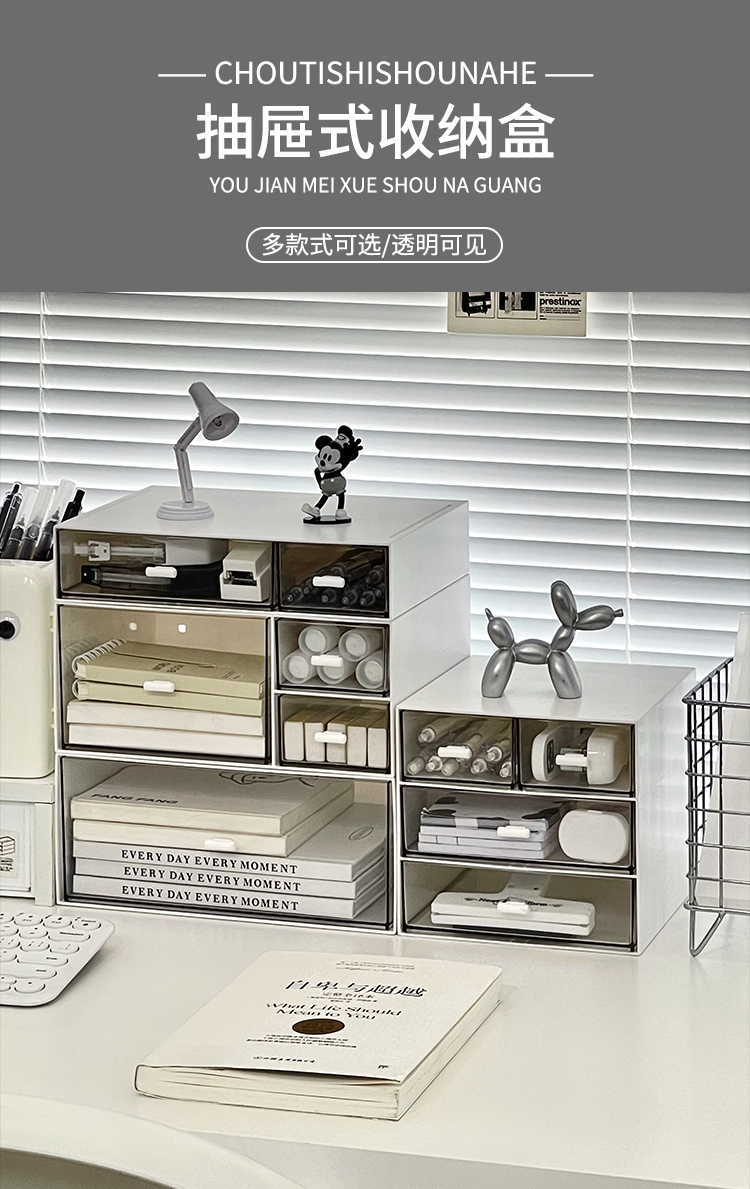透明アクリルデスクトップ収納ボックスデスク読書文具引き出し型収納ラック化粧品雑貨整理ボックス
