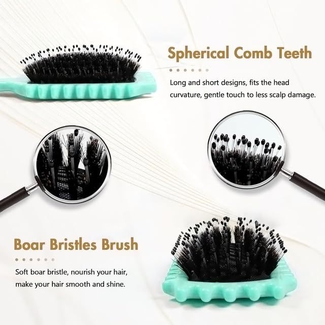 豚毛ブラシ 女性用ロングヘア専用 エアバッグコーム 美髪コーム スムースヘアマッサージコーム カールヘア用麦わらヘアケアエアパッドコーム