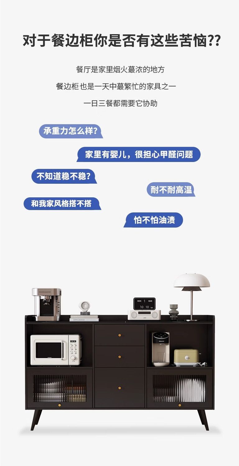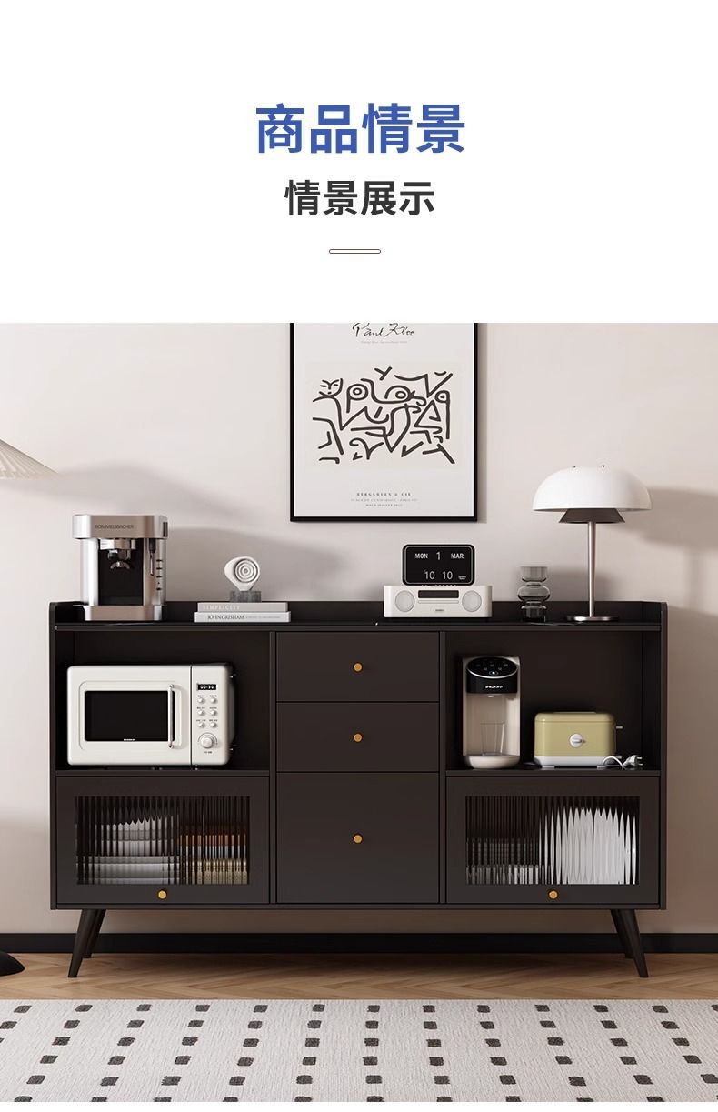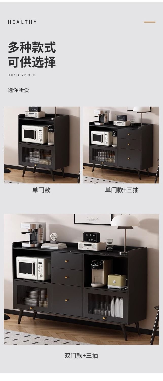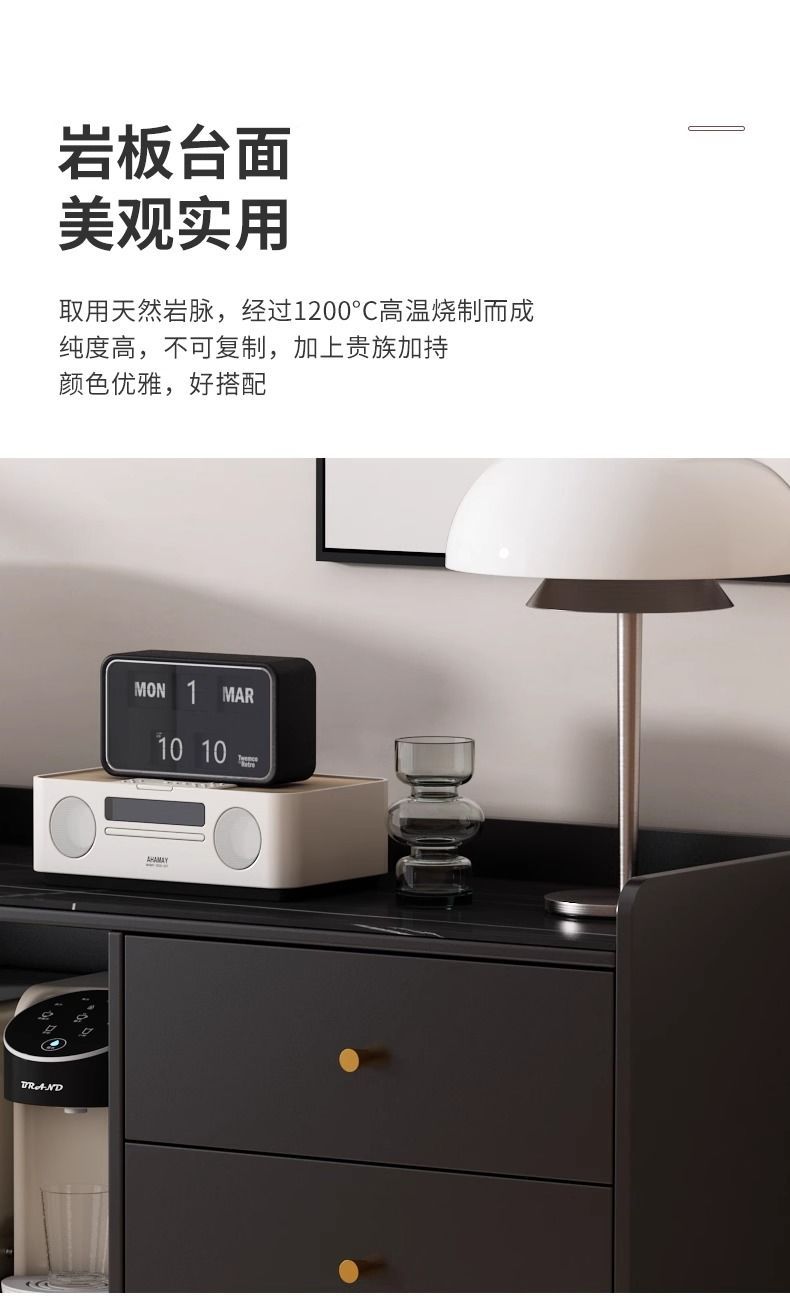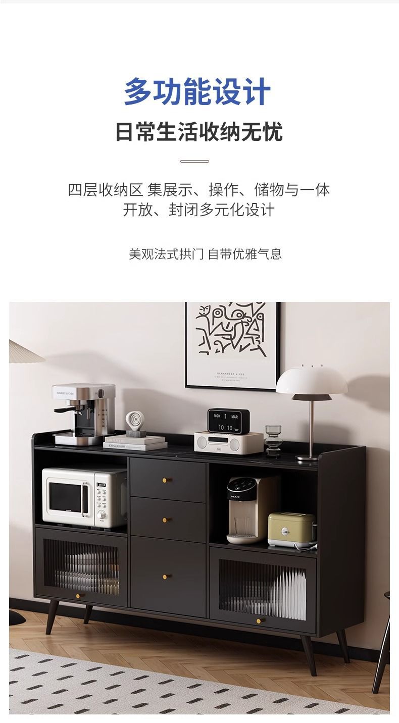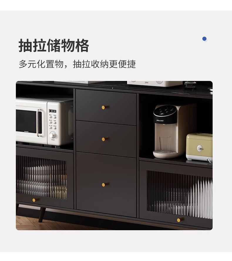 2025款实木轻奢岩板餐边柜一体靠墙家用厨房橱碗柜置物柜储物柜子