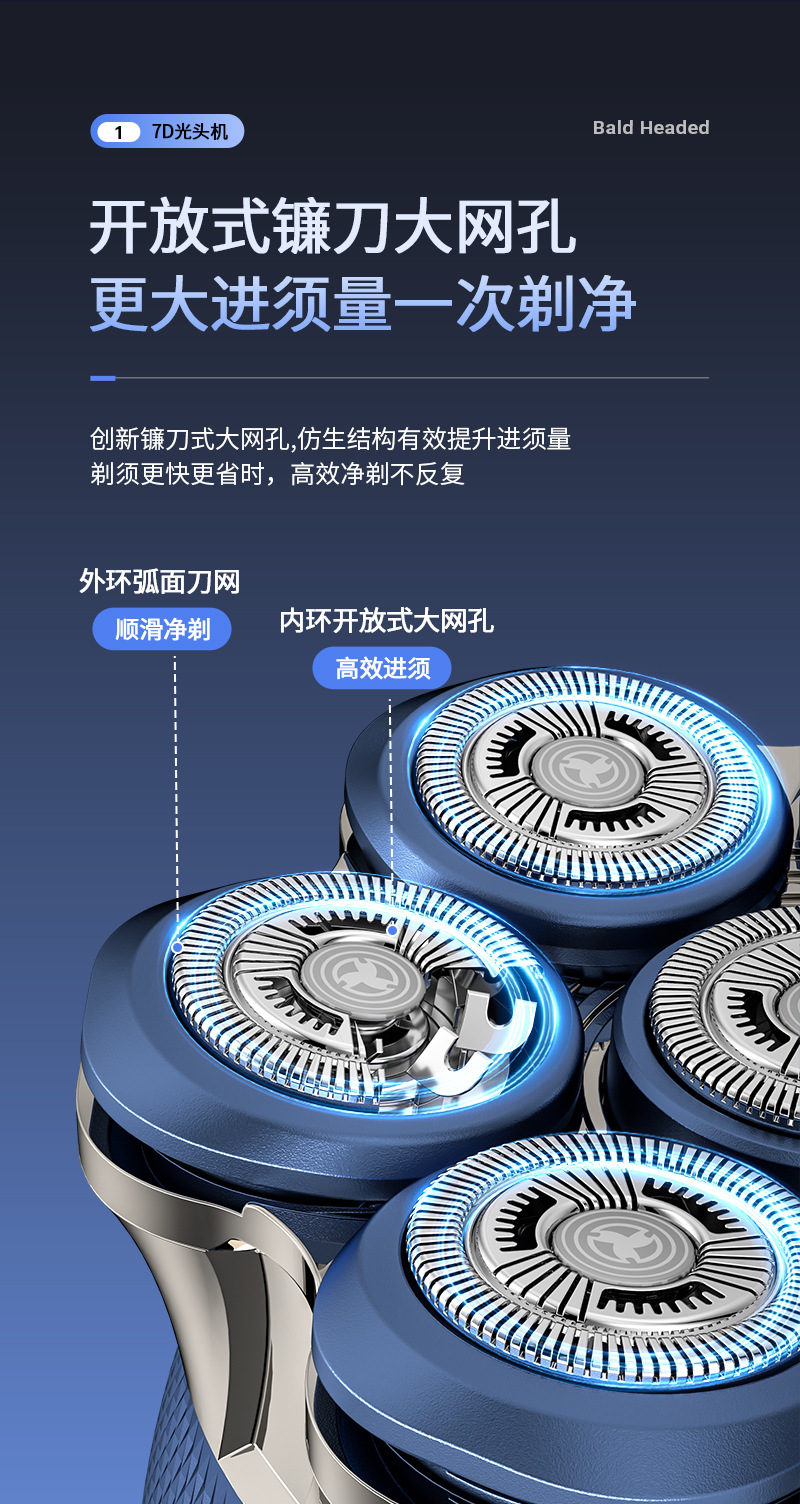 2:磁吸刀头双环刀片,立体刀头结构。