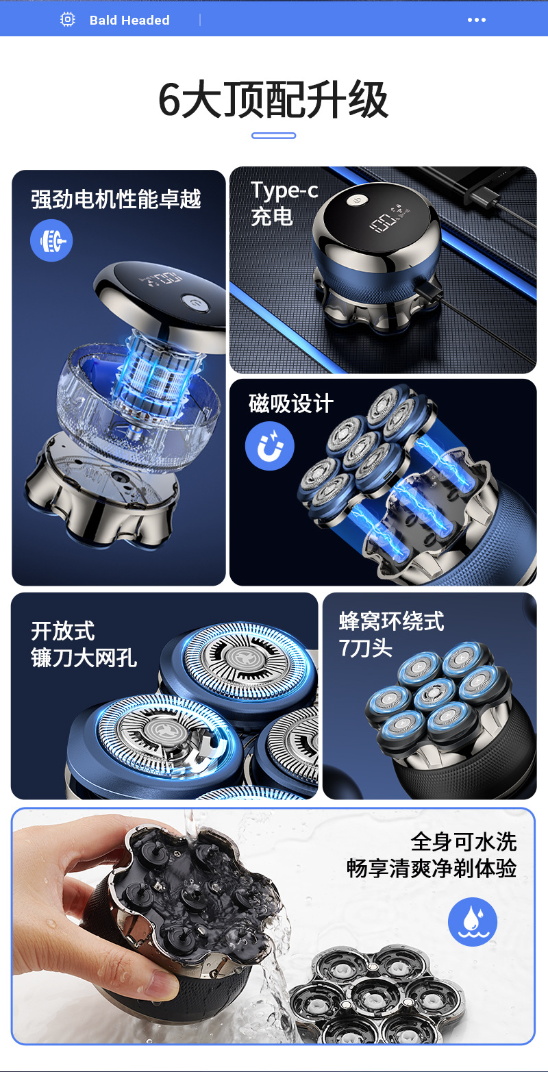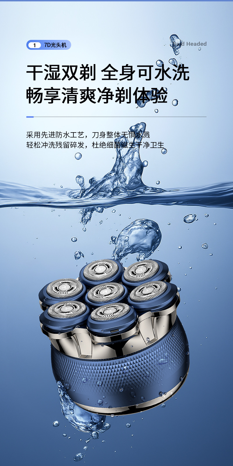 1. 全身水洗剃须刀,非刀头水洗。