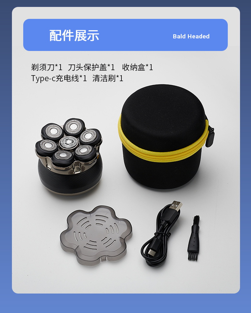 标配:剃须刀+充电器+毛刷+说明书+彩盒