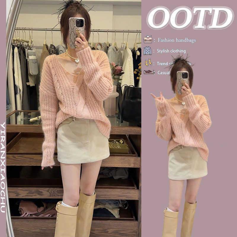 ファッションが洗練されている2024秋冬の痩せたスーツの女性ニットのセーターは、気質の半身のスカートの2つのセットになっています