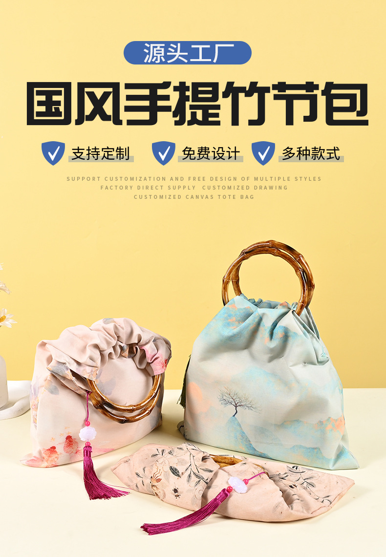 新中国式オリジナル2024新品大容量竹ハンドル香雲紗復古風漢服チャイナドレス手持ちバッグ