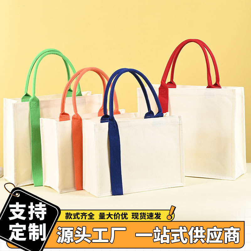 空白のリボンキャンバストートバッグカスタム広告ギフトキャンバスバッグシンプルでファッショナブルな立体ハンドバッグ