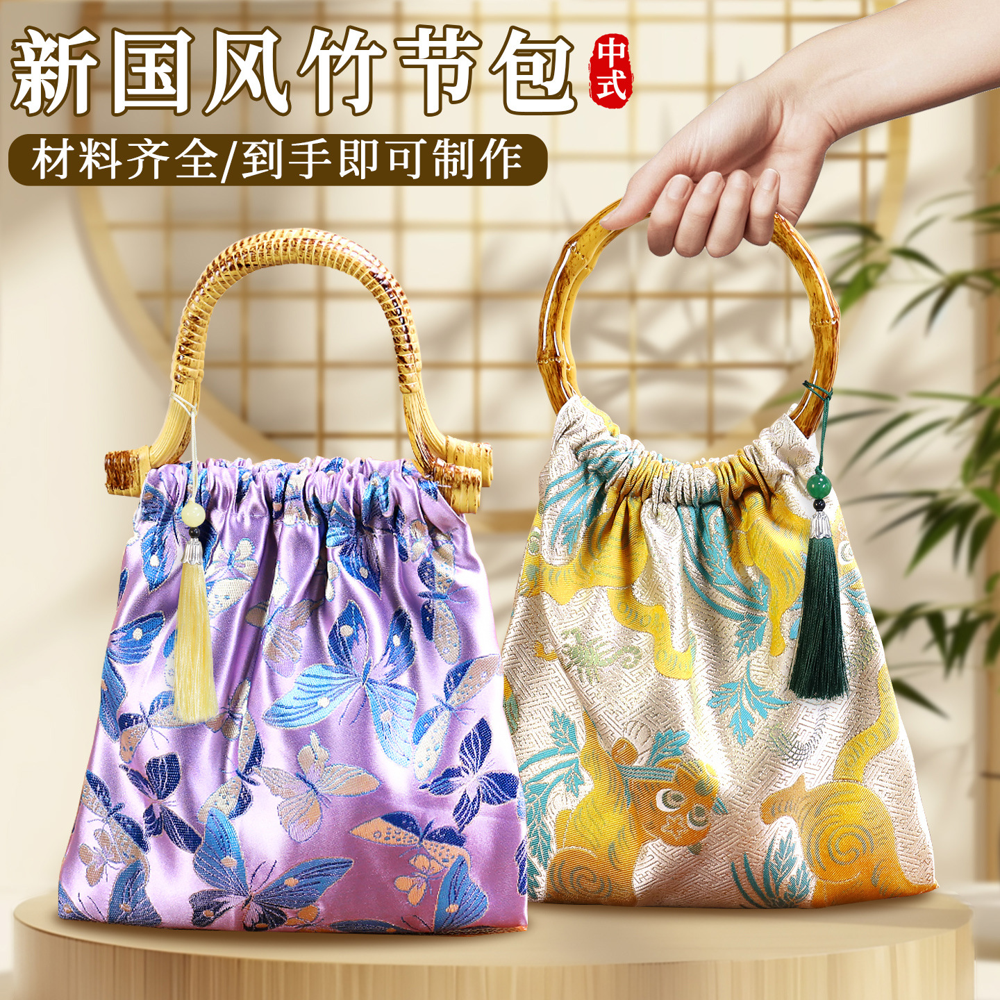 竹节包手工diy材料包仿宋锦新中式包包国风自制包沙龙活动团建