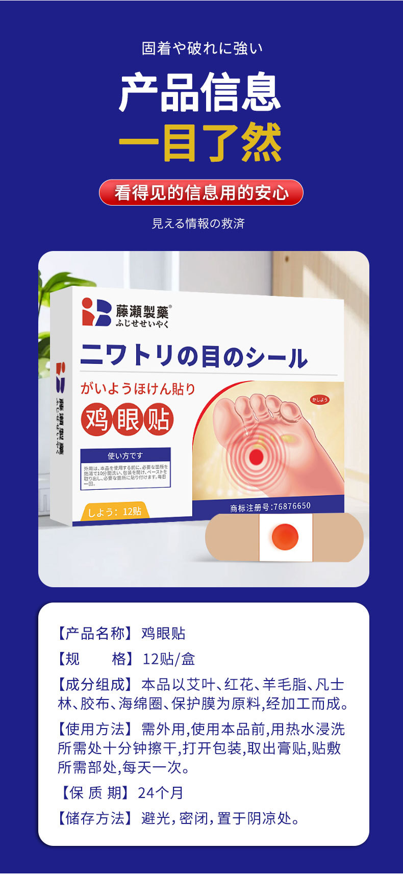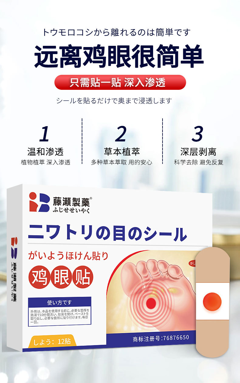 藤漱制药鸡眼贴足部护理鸡眼膏老茧鸡茧膏鸡眼贴12贴/盒工厂现货