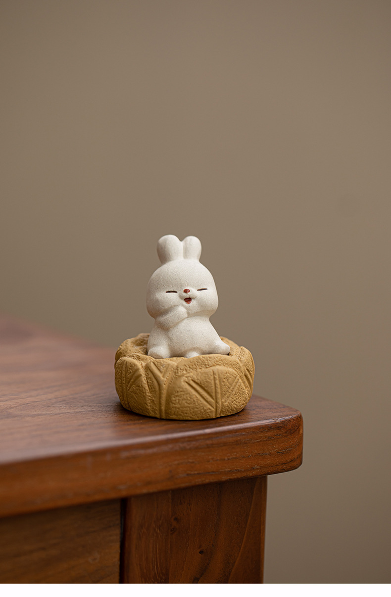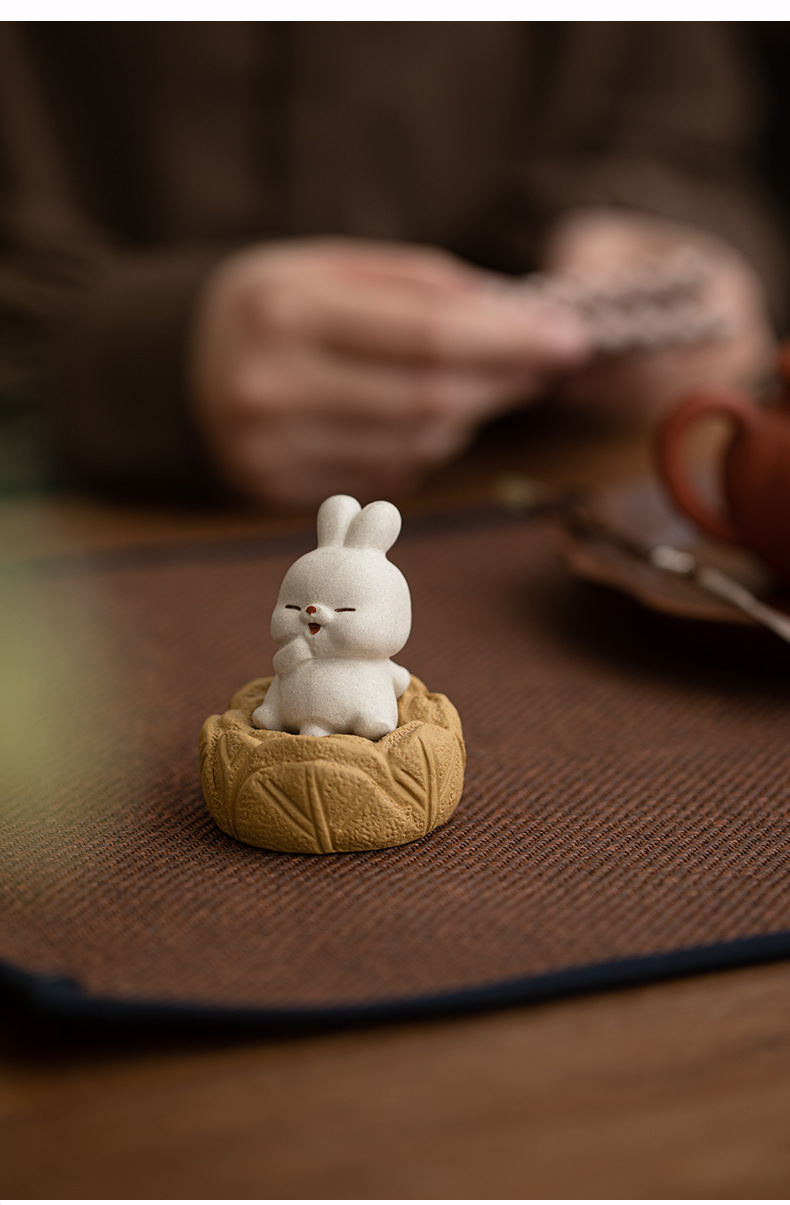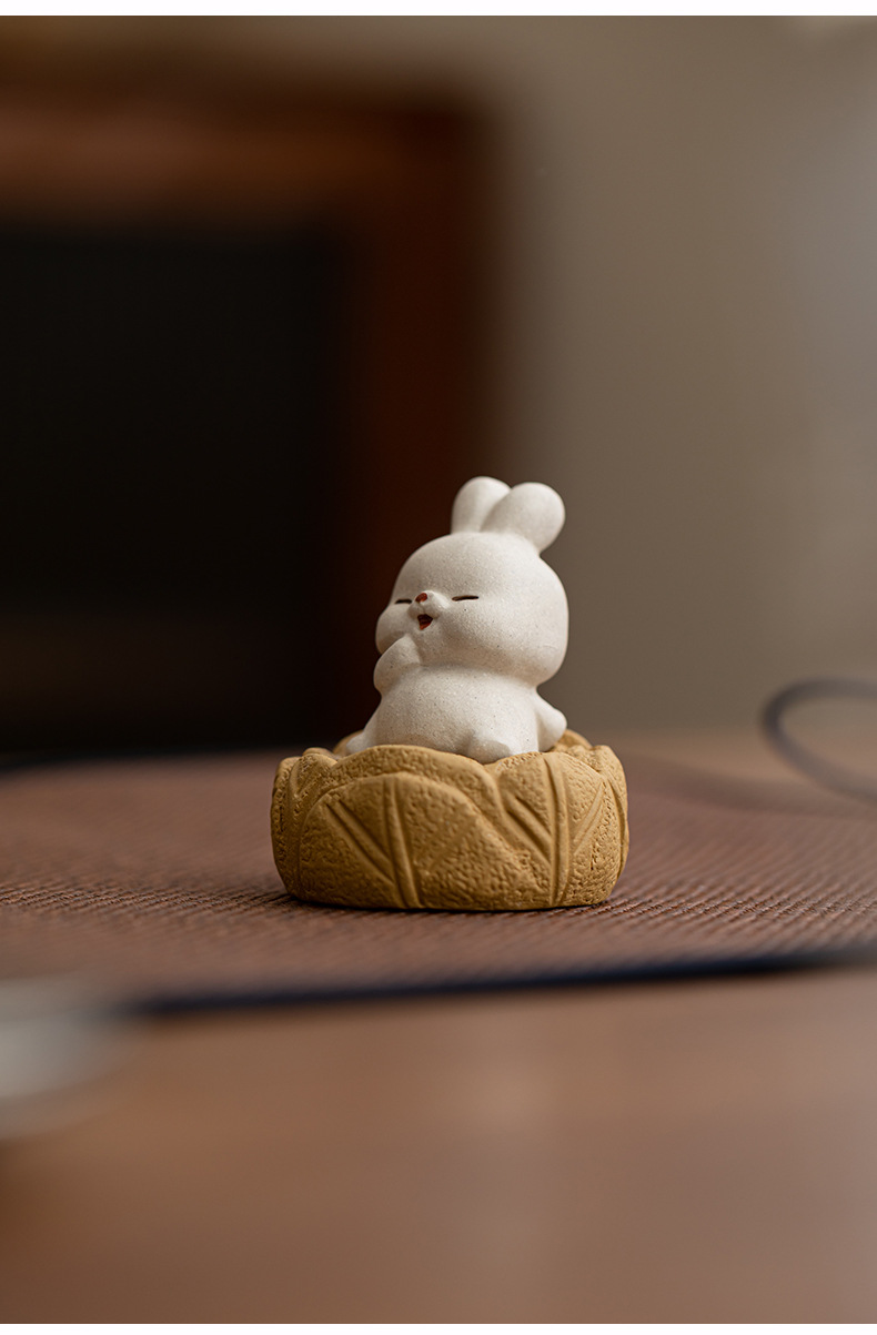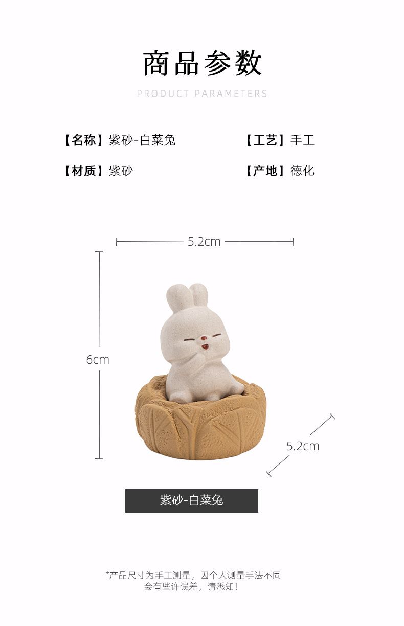 Wuxinji 紫砂ウサギ茶ペットは座ってお金を稼ぐことができますキャベツ白ウサギは干支を維持できますかわいい幸運の茶トレイの装飾品