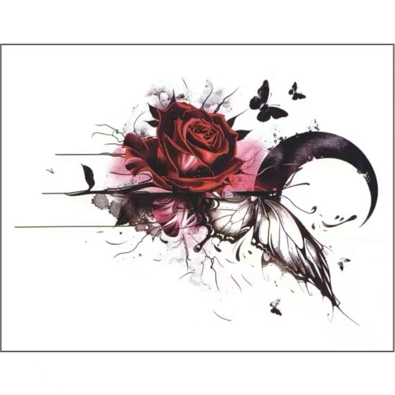 昼夜ローズバタフライタトゥーインスタイル防水長持ちカラフルな甘くてクールなホットガール鎖骨アームステッカー高価値