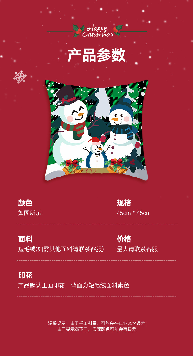 クロスボーダー新しいクリスマス枕カバーホリデーデコレーションソファ背もたれ枕カバークリスマスツリー雪だるまプリントクッションカバー