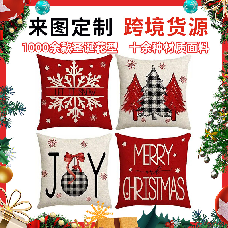 2025 クリスマス枕レッドクリスマスツリースノーフレークアマゾンクロスボーダー家の装飾枕カバー卸売