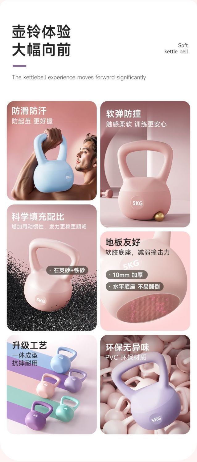 競技ソフトケトルベル男性女性家庭用静音防漏ケトルベルPVCダンベル痩せ腕フィットネス器材卸売り