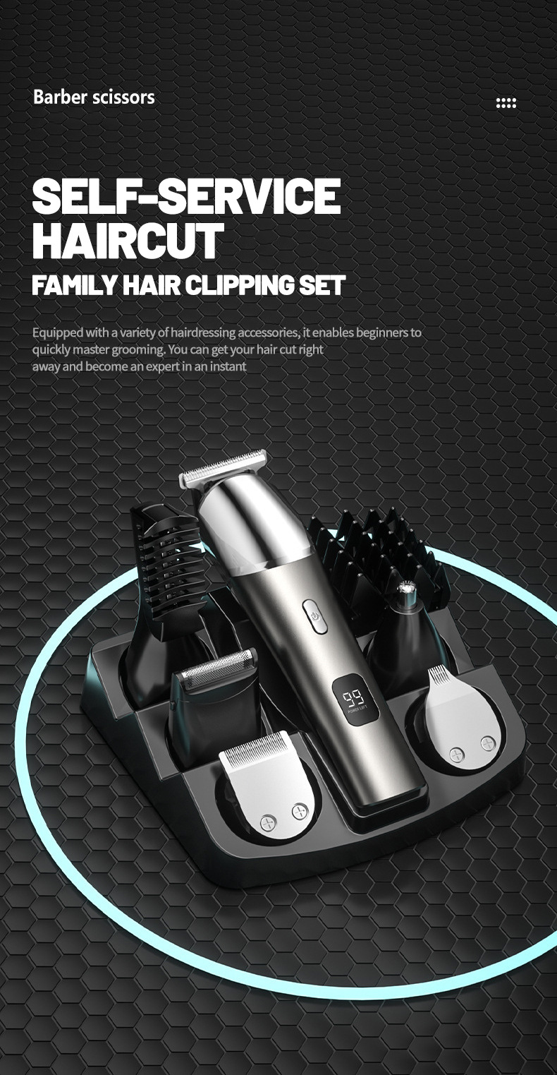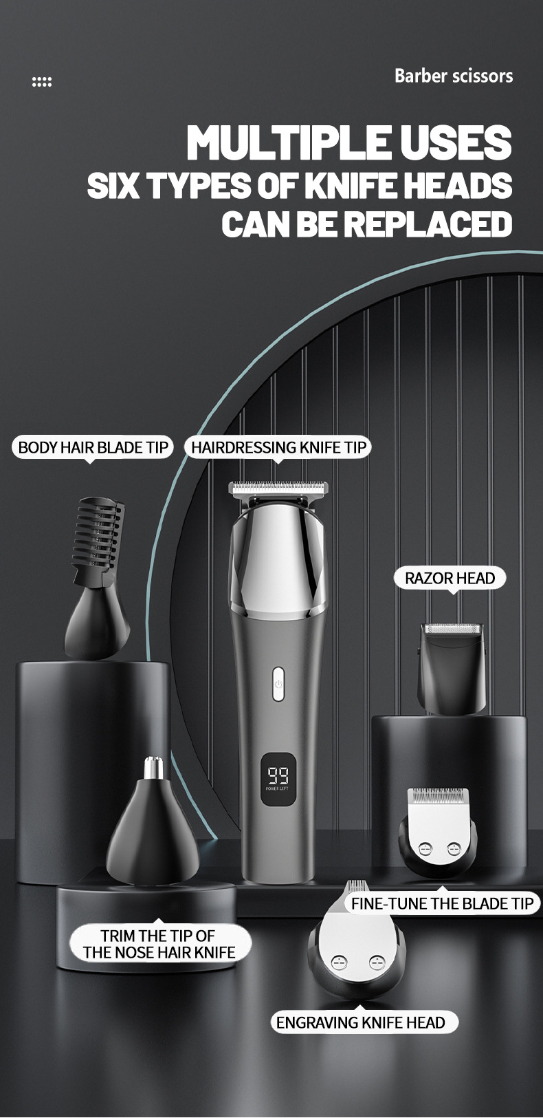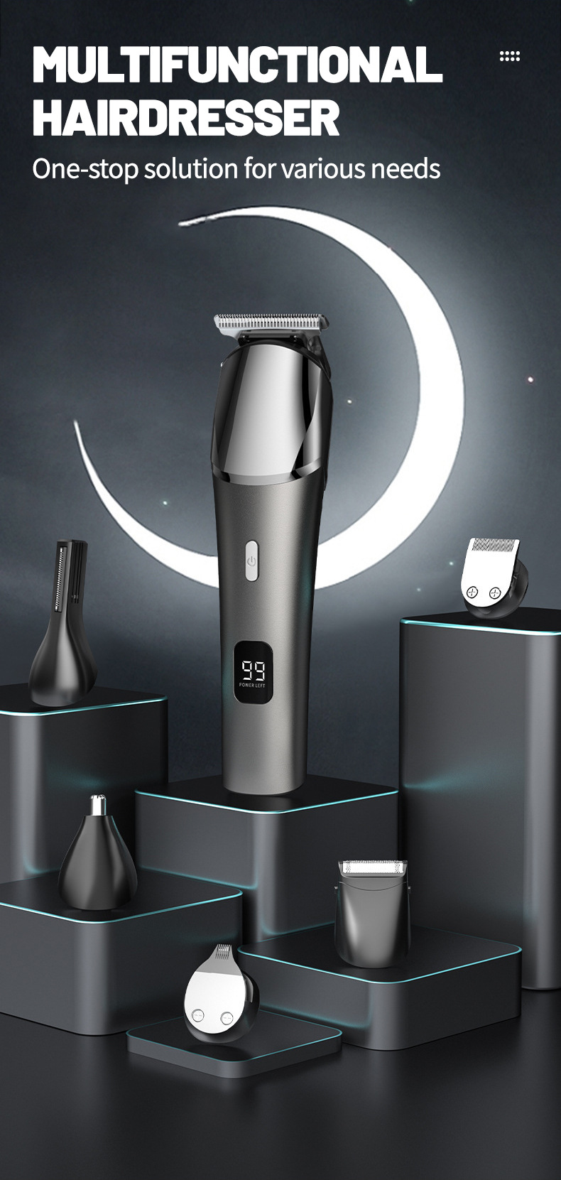 電気理髪器セット五合一デジタル表示水洗い電気はさみusb充電専門オイルヘッド彫刻クロスボーダー