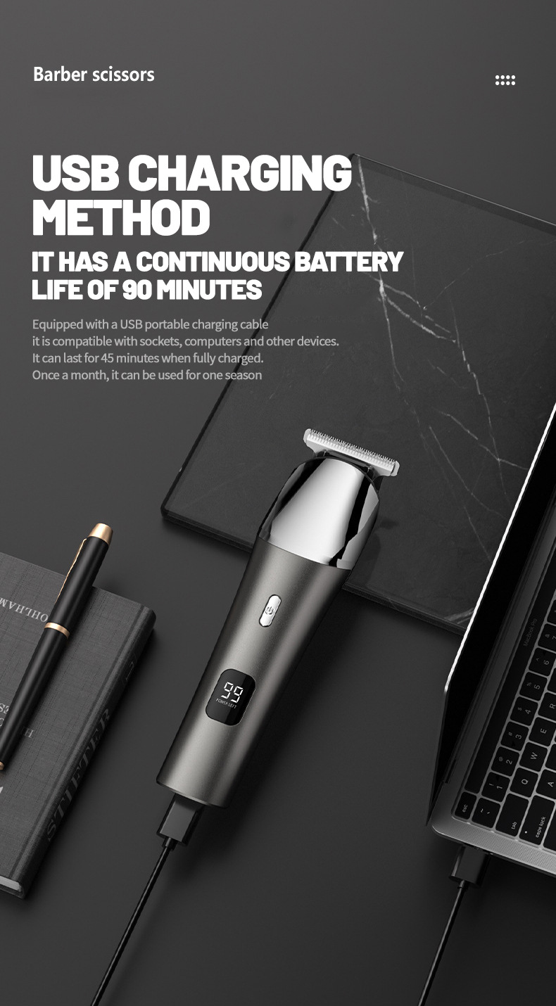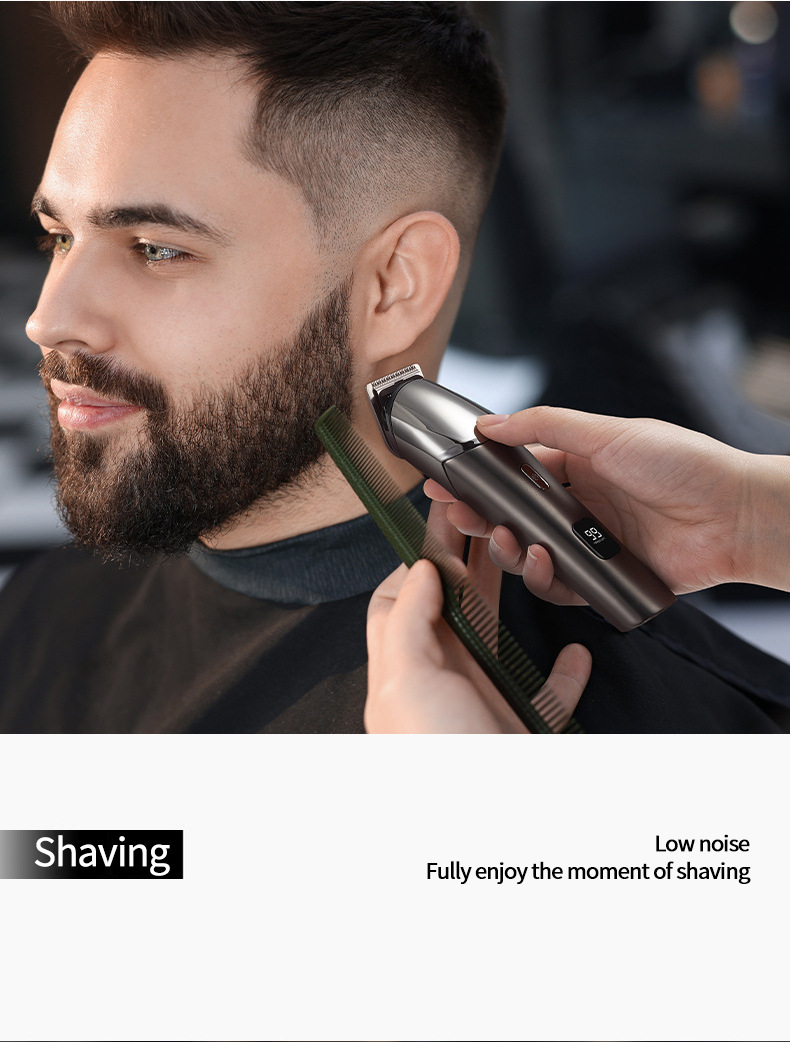 クロスボーダー人気液晶表示オイルヘッド理髪器リチウム電池静音充電可能彫刻可能なナイフヘッド水洗電気プッシュ