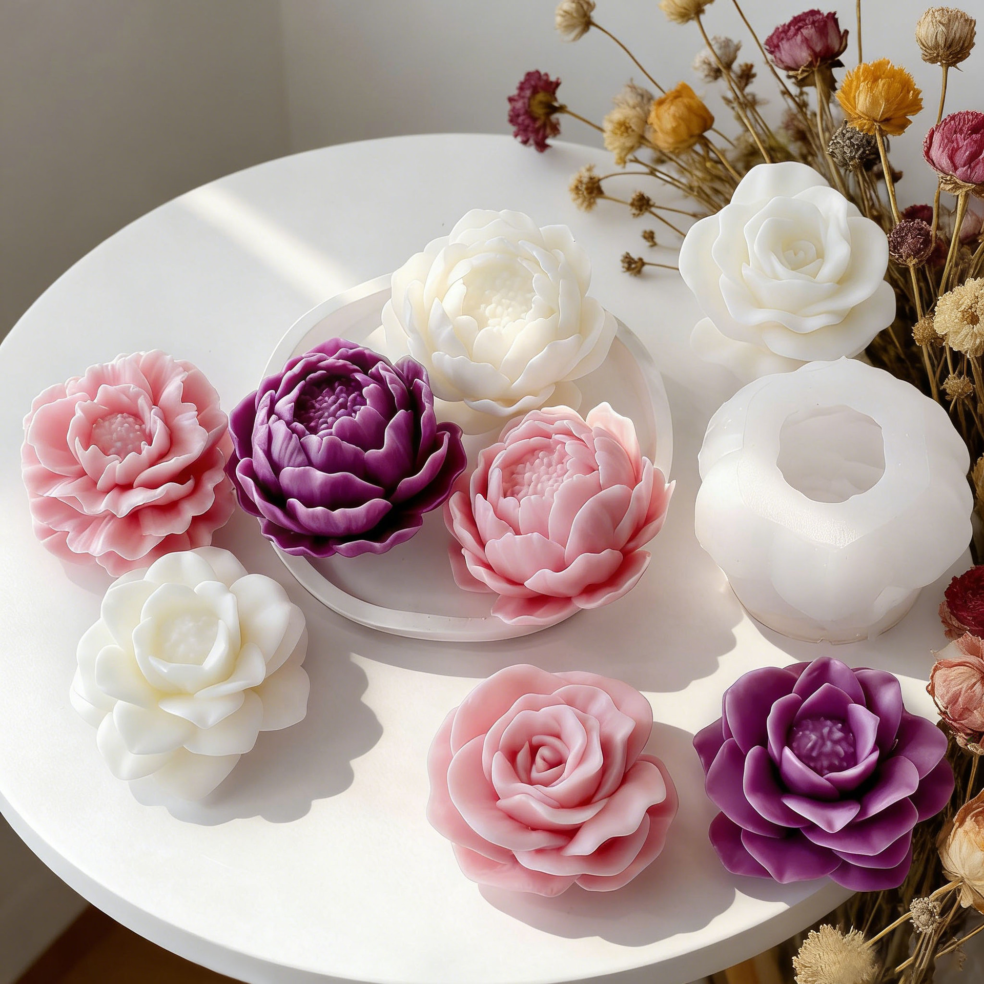 嘉汇美バラ花香薫ろうそくシリカゲル金型立体牡丹花手作カップワックスdiy香薫ろうそく