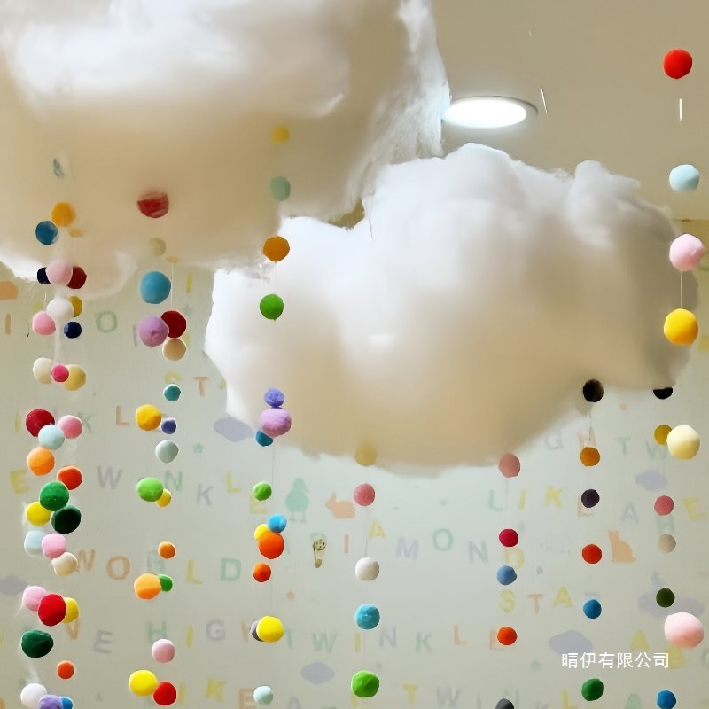 幼儿园环创彩虹毛球云朵装饰创意手工棉花风铃吊饰教室布置挂饰