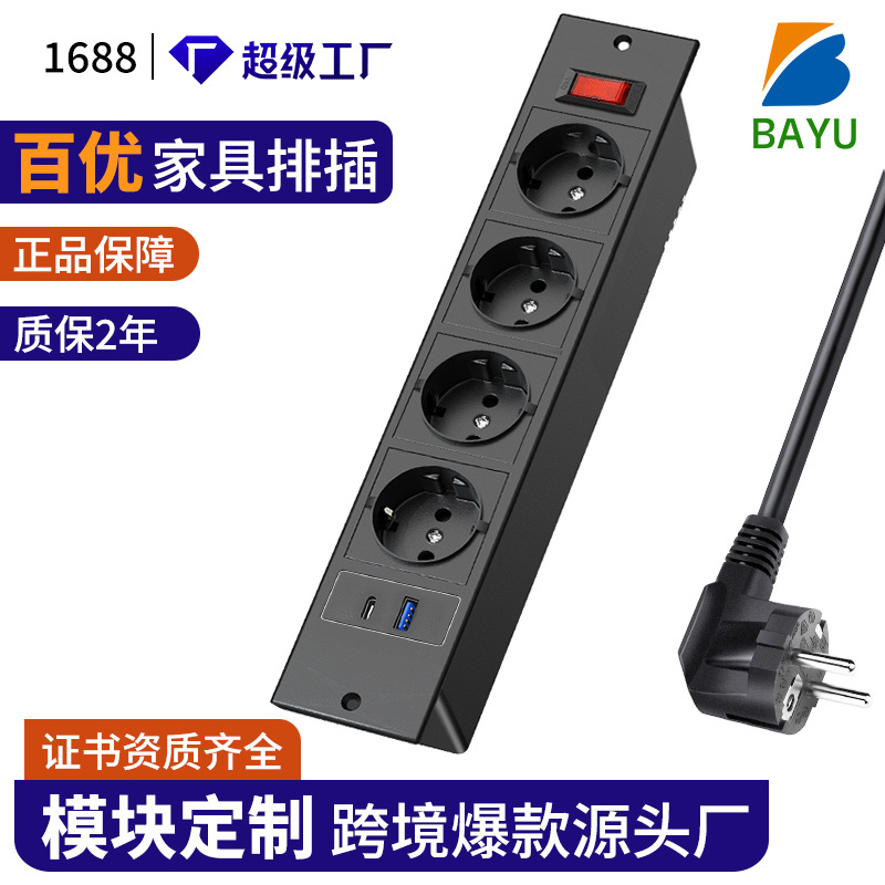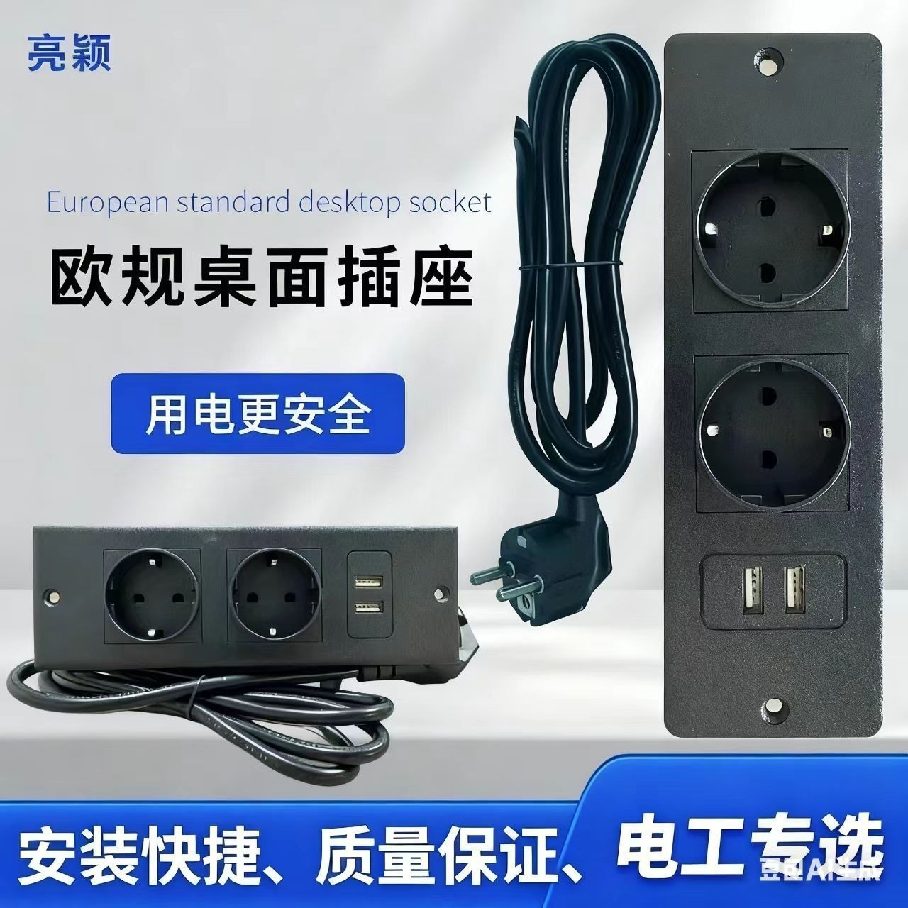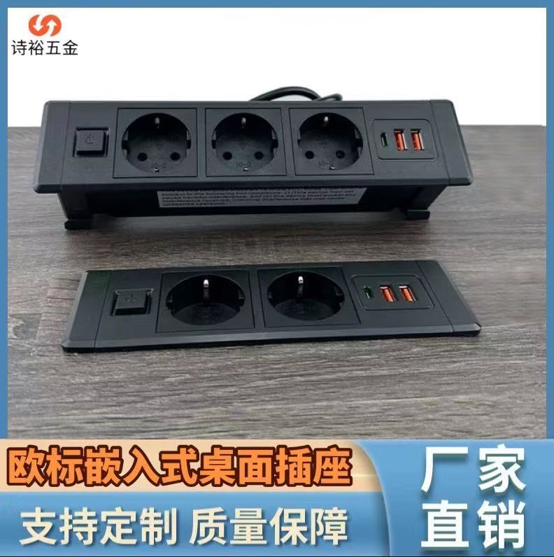 ヨーロッパ標準埋め込みデスクトップソケットヨーロッパ標準電源タップオフィスコンピュータカウンタートップソケットUSB + Type-Cポート電源タップ