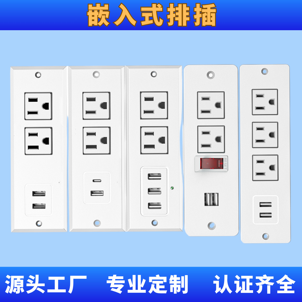 美标桌面嵌入式插座柜子台面小开孔带USB内嵌电源线C口家具接线板