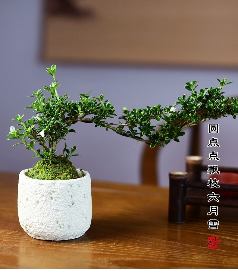 六月雪盆栽崖紅花ティーテーブル禅屋内窓枠小さな緑の植物オフィスコーヒーテーブルデスクトップ鉢植え