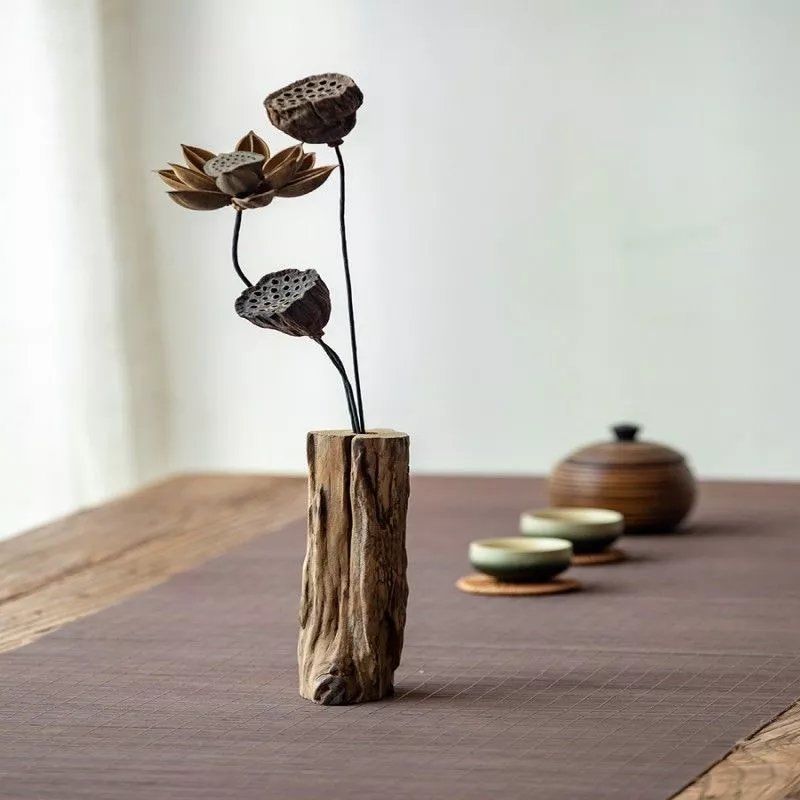 复古自然枯木实木禅意干花真花莲蓬荷花风干装饰中式摆件客厅