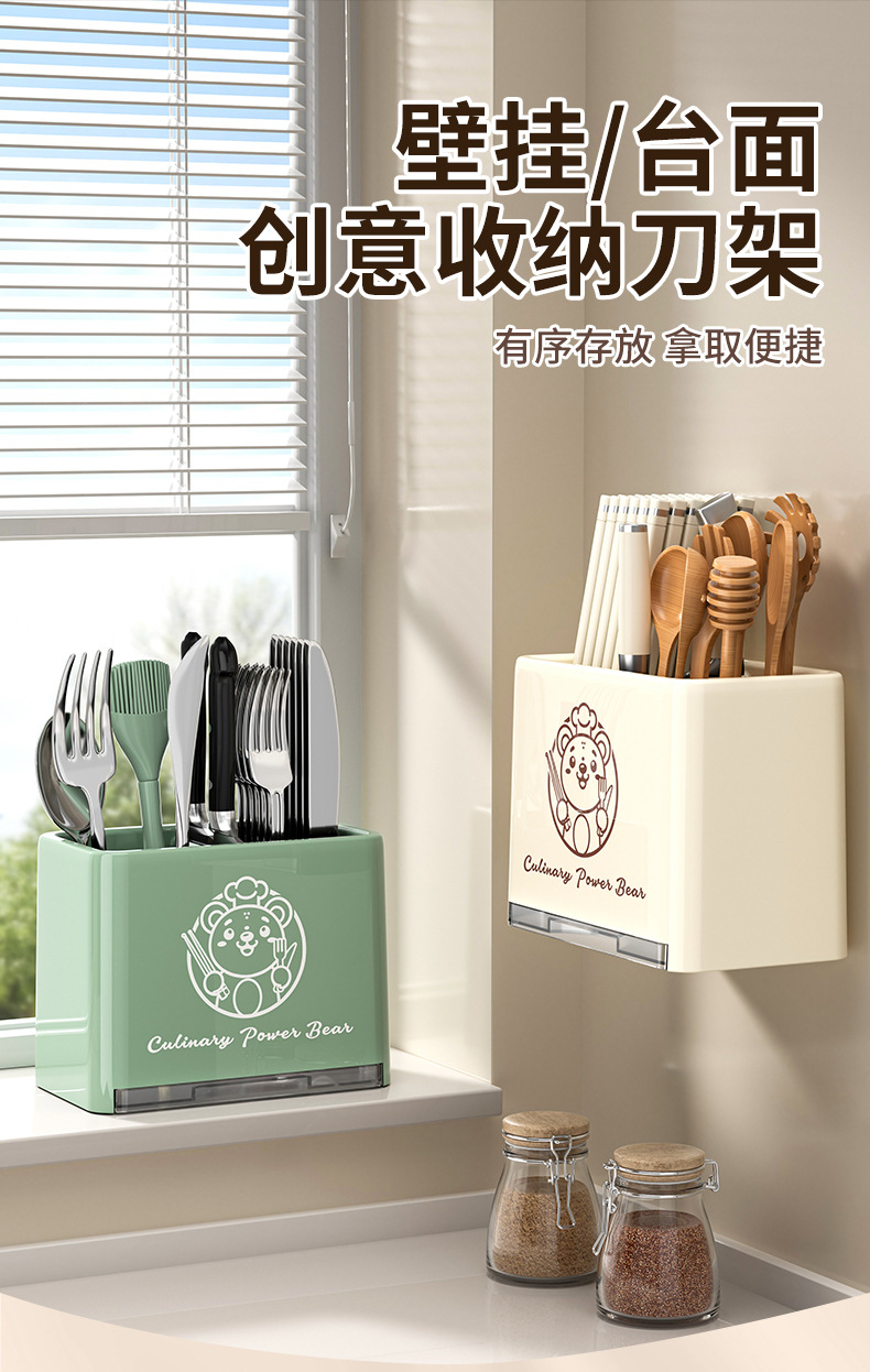 厚手プラスチックキッチン箸笼一体収纳ラック壁挂け式2格子パーテーション収纳食器ナイフホルダー水切りラック