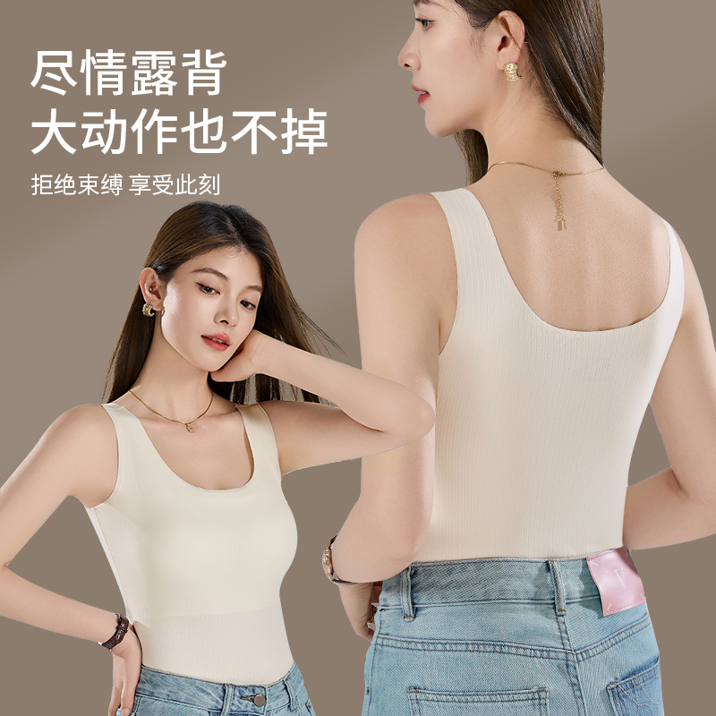 胖MM加肥大码背心女宽肩带固定杯二合一时髦内外百搭显瘦无袖上衣